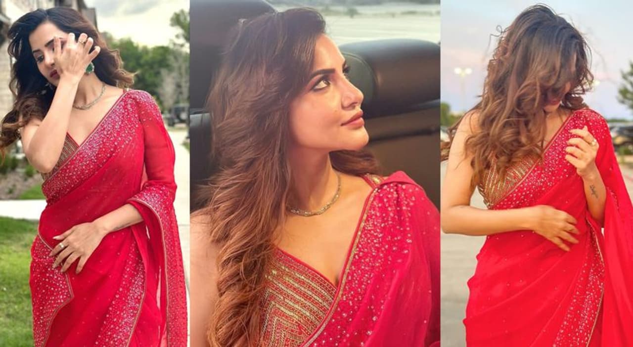 అషురెడ్డి అందాలను ముద్దాడుతున్న ఎర్రచీర, చిన్న జాకెట్.... మనసులు గతి తప్పడం ఖాయం!