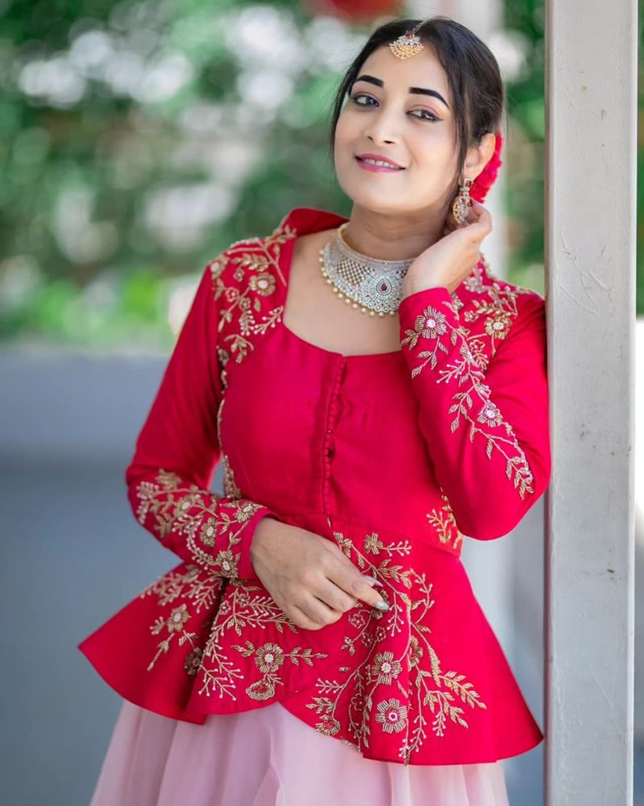 తాజా ఫొటోషూట్లో భానుశ్రీ బ్యూటీపుల్ లుక్ తో ఆకట్టుకుంది. సంప్రదాయ దుస్తుల్లో పద్ధతిగా మెరిసి కుర్రాళ్ల చూపులను కట్టి పడేసింది. అదిరిపోయేలా ఫోజులిస్తూ ఆకట్టుకుంది. లేత గులాబీ లెహంగాలో, డార్క్ పింక్ టాప్ లో మెరిసింది.