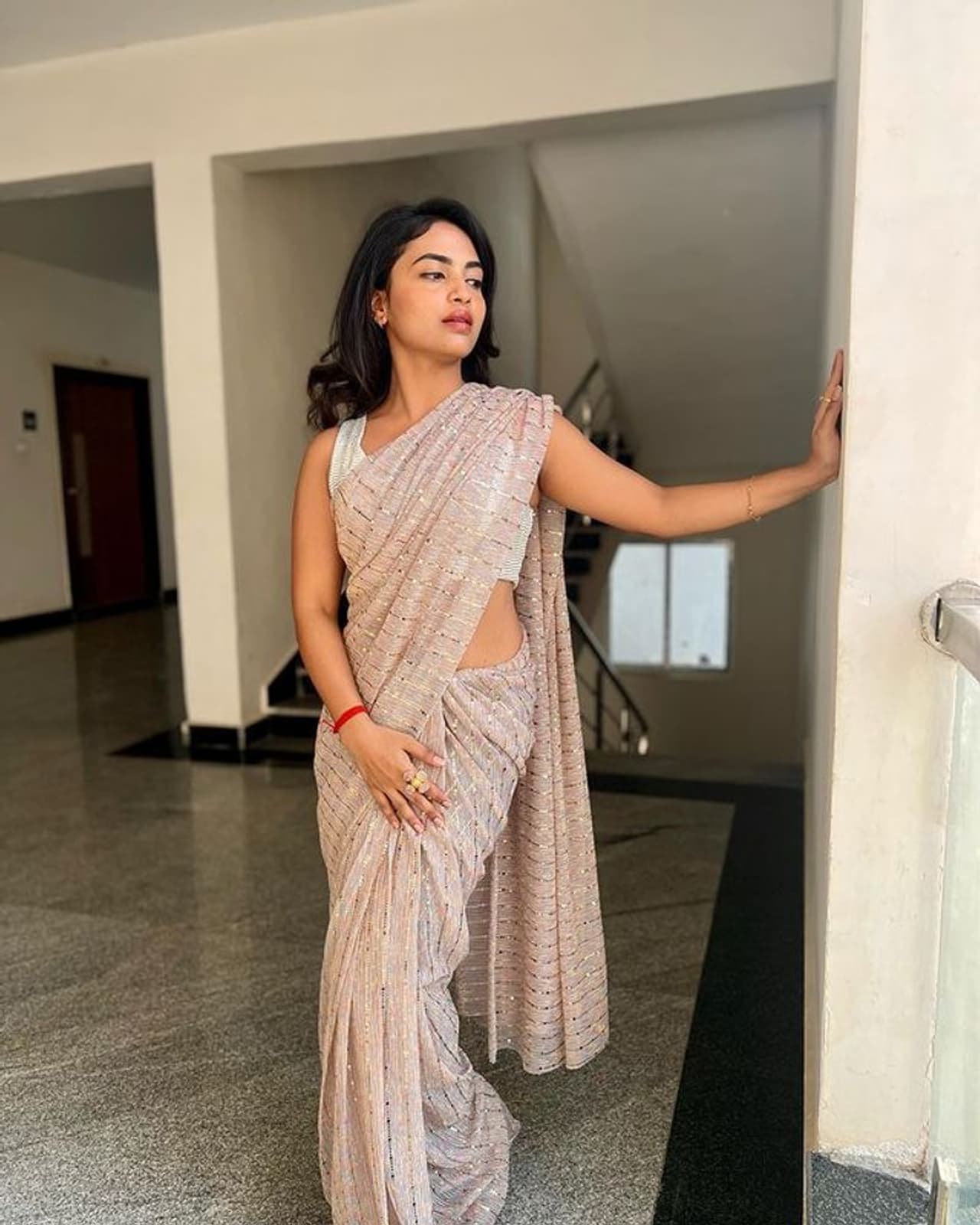 ప్రస్తుతం సోషల్ మీడియాలో ఫ్యాన్ ఫాలోయింగ్ పెంచుకుంటోంది. ఈ సందర్భంగా క్రేజీ పోస్టులు పెడుతూ నెటిజన్లను ఆకట్టుకుంటోంది. మరోవైపు అదిరిపోయేలా ఫొటోషూట్లు కూడా చేస్తూ మైండ్ బ్లాక్ చేస్తోంది. తాజాగా చీరకట్టులో మెరిసింది.