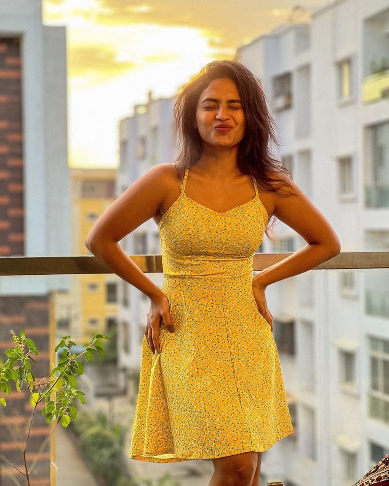 లేటెస్ట్ గా హారిక పంచుకున్న ఫొటోలు స్టన్నింగ్ గా ఉన్నాయి. ఎల్లో కలర్ మినీ టైట్ గౌన్ లో హారిక అందాలను ఆరబోసింది. బాడీ కొలతలు చూపిస్తూ మైమరిపించింది. మరోవైపు బ్యాక్ అందాలతో మతులు పోగొట్టింది. బాల్కానీలో నిల్చుని కొంటెగా ఫోజులిస్తూ కుర్ర హృదయాలను కొల్లగొట్టింది.