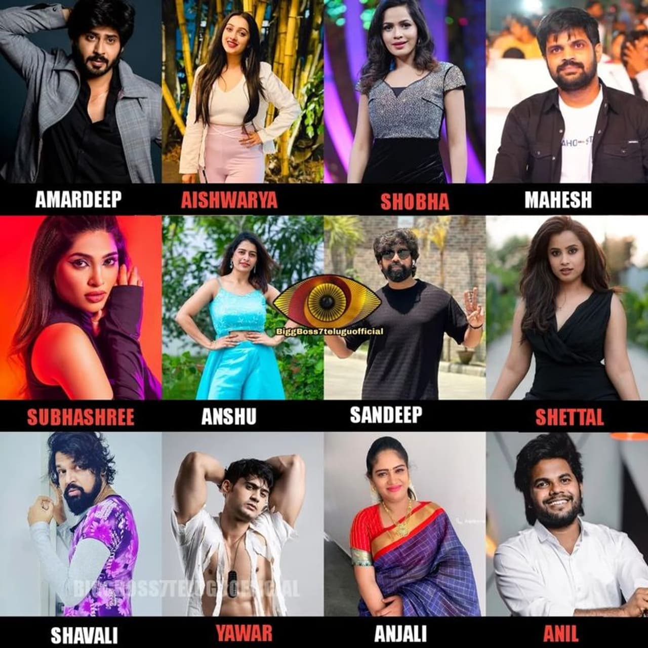 Bigg Boss Telugu 7లో కంటెస్టెంట్లుగా సీరియల్ నటుడు అమర్ దీప్, సీరియల్ యాక్ట్రెస్ ఐశ్వర్య, శోభ, సినీ నటుడు మహేశ్ అచంట, సుభాశ్రీ, అన్షు, ఆట సందీప్, శేతల్, షావలి, మోడల్ యవర్, అంజలి, యూట్యూబర్ అనిల్ జీలా పేర్లు లిస్టులో ఉన్నట్టు తెలుస్తోంది. వీరి పేర్లు ఆల్మోస్ట్ కన్ఫమ్ అయ్యాయని అంటున్నారు. వీరితో పాటు బుల్లెట్ భాస్కర్, పలువురు యాంకర్స్,, సినీ నటుల పేర్లు కూడా వినిపిస్తోంది.