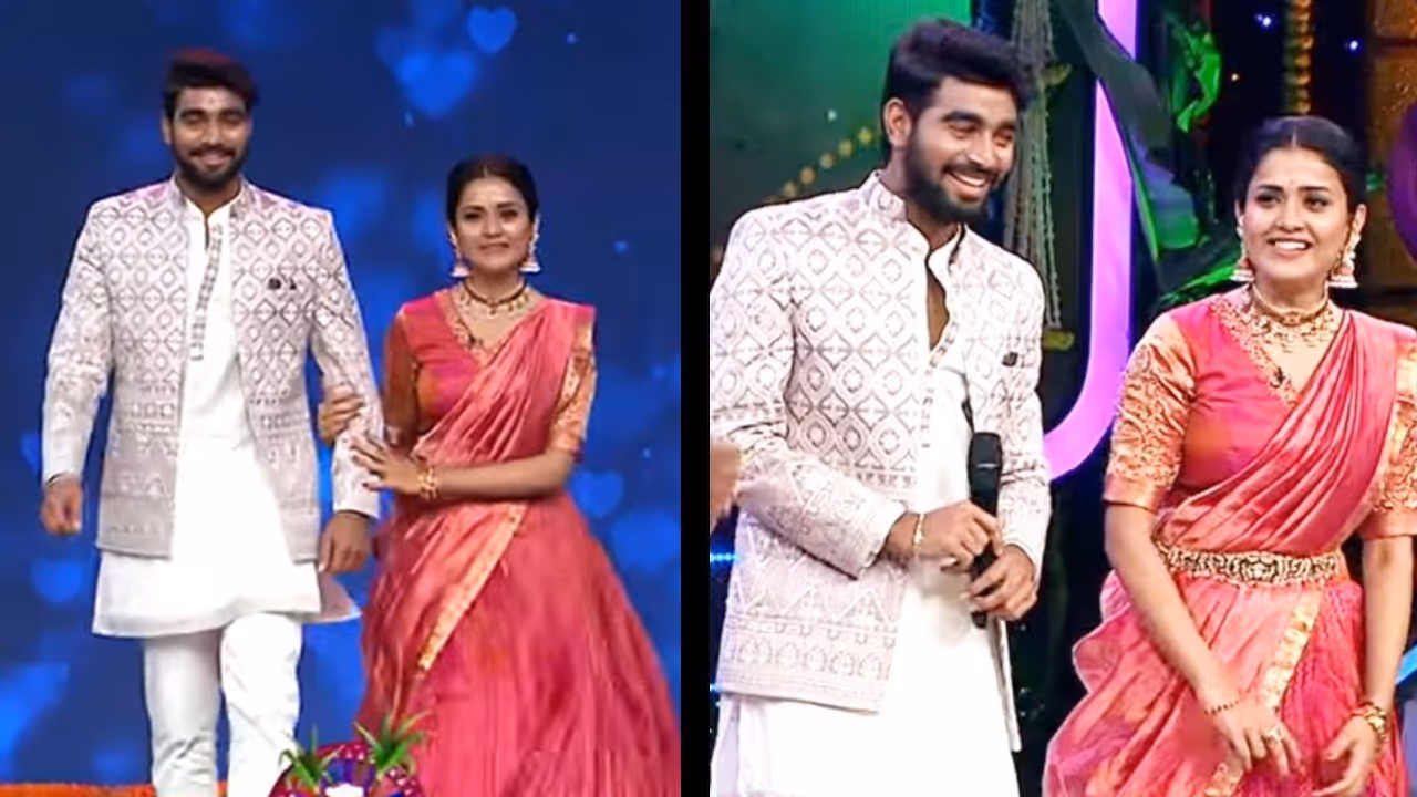 బిగ్ బాస్ నుంచి బయటికి వచ్చిన తర్వాత కూడా తనూజపై తన ప్రేమని అలానే కొనసాగిస్తున్నాడు కళ్యాణ్. రీసెంట్ గా తనూజ-కళ్యాణ్ ఇద్దరూ మా సంక్రాంతి ఈవెంట్ లో సందడి చేశారు. దీనికి సబంధించిన ప్రోమోను తాజాగా రిలీజ్ చేశారు. ఇందులో కళ్యాణ్ పడాల, తనూజ ఇద్దరు స్టేజ్ మీద డ్యాన్స్ చేశారు. తనూజ గురించి కళ్యాణ్ తన మనసులో మాట బయట పెట్టాడు. ''తనూజ నాకు దొరకడం నిజంగా అదృష్టం అనే అనుకుంటున్నాను.. నా లైఫ్లోకి వచ్చినందుకు చాలా థాంక్స్'' అంటూ కళ్యాణ్ చెప్పగానే తనూజ సర్ప్రైజ్ అయింది. ఈ సీన్ చూసి.. కళ్యాణ్ తనూజకు ప్రపోజ్ చేశాడా.. వీరి మధ్య సమ్ థింగ్ సమ్ థింగ్ అంటూ కామెంట్స్ చేస్తున్నారు ఆడియన్స్.