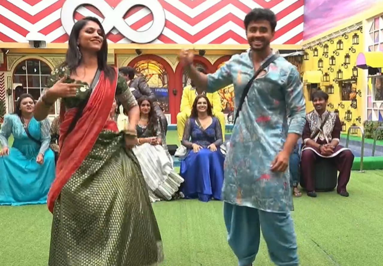 ఆ పాట ఏంటో గుర్తించి ఇంటి సభ్యులు పాడాలి. ప్రతి పాటని ఇంటి సభ్యులు గుర్తించి.. అదిరిపోయే డ్యాన్స్ చేశారు. ఈ క్రమంలో గౌతమ్.. హరితేజని ఒకసారి.. రోహిణిని ఒకసారి ఎత్తుకుని డ్యాన్స్ చేయడం హైలైట్ గా నిలిచింది. ఇదిలా ఉండగా చివరికి నామినేషన్స్ లో హరితేజ, నయని పావని నిలిచారు. నాగార్జున ఇద్దరికీ రెండు హ్యామర్స్ ఇచ్చారు. వారికి కేటాయించిన పలకాలని సుత్తితో కొట్టాలి. అప్పుడు ఆ పలకలపై హరితేజ, నయని ఫోటోలు కనిపిస్తాయి.