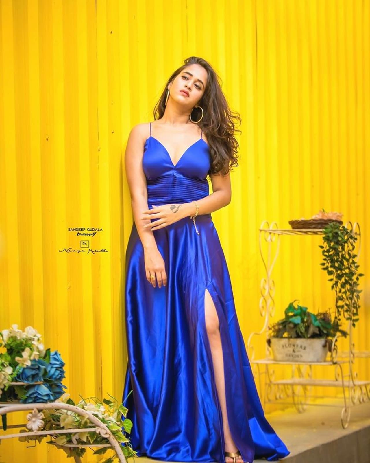 బ్లూ కలర్ స్లీవ్ లెస్గౌనులో మెరిసింది దీప్తి సునైనా. తొడ అందాలను కొద్ది, టాప్ అందాలను మరికొద్దిగా చూపిస్తుంది.