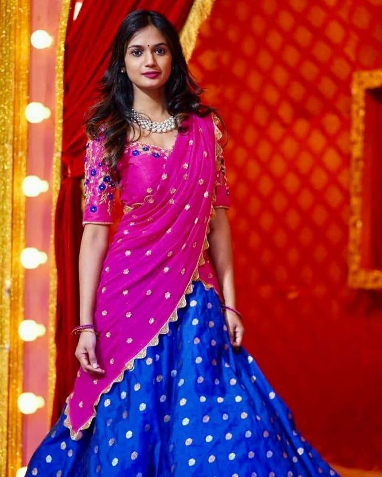 హాఫ్ శారీలో అరియానా గ్లోరీ కిర్రాక్ పుట్టిస్తుంది. లేటెస్ట్ గా ఈ లంగాఓణీ ఫోటోలను పంచుకుంది అరియానా. అవి ఆద్యంతం ఆకట్టుకుంటున్నాయి.