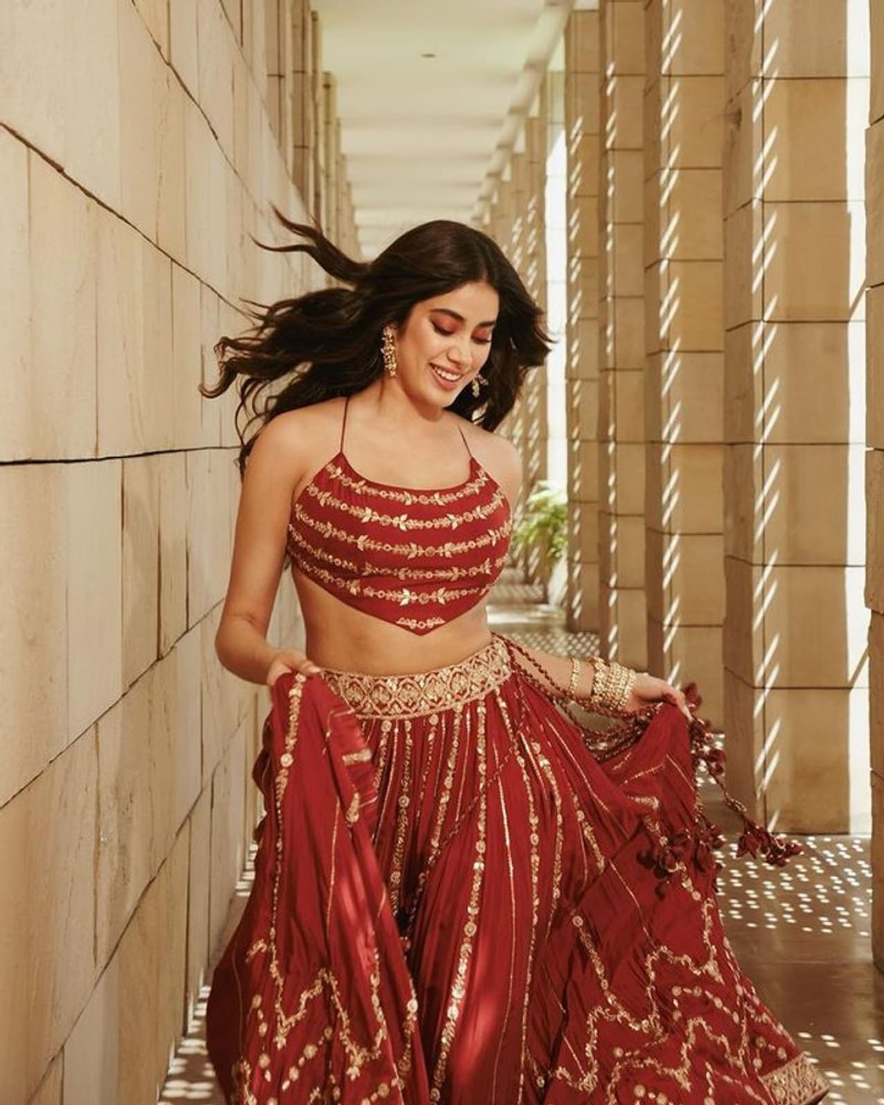 అయితే, ఈ కార్యక్రమానికి హాజరైన జాన్వీ కపూర్ రెడ్ స్లీవ్ టెస్ జాకెట్, మ్యాచింగ్ లెహంగాలో అందరికీ ద్రుష్టిని ఆకర్షించింది. ఈ అవుట్ ఫిట్ లో జాన్వీ బ్యూటీ రెండింతలైందని చెప్పొచ్చు. తాజాగా ఈ ప్రోగ్రామ్ కు సంబంధించిన ఫొటోలను తన ఇన్ స్టాలో పోస్ట్ చేసింది. ఫొటోలకు కొద్దిక్షణాల్లోనే లక్షల్లో లైక్స్ వచ్చాయి.