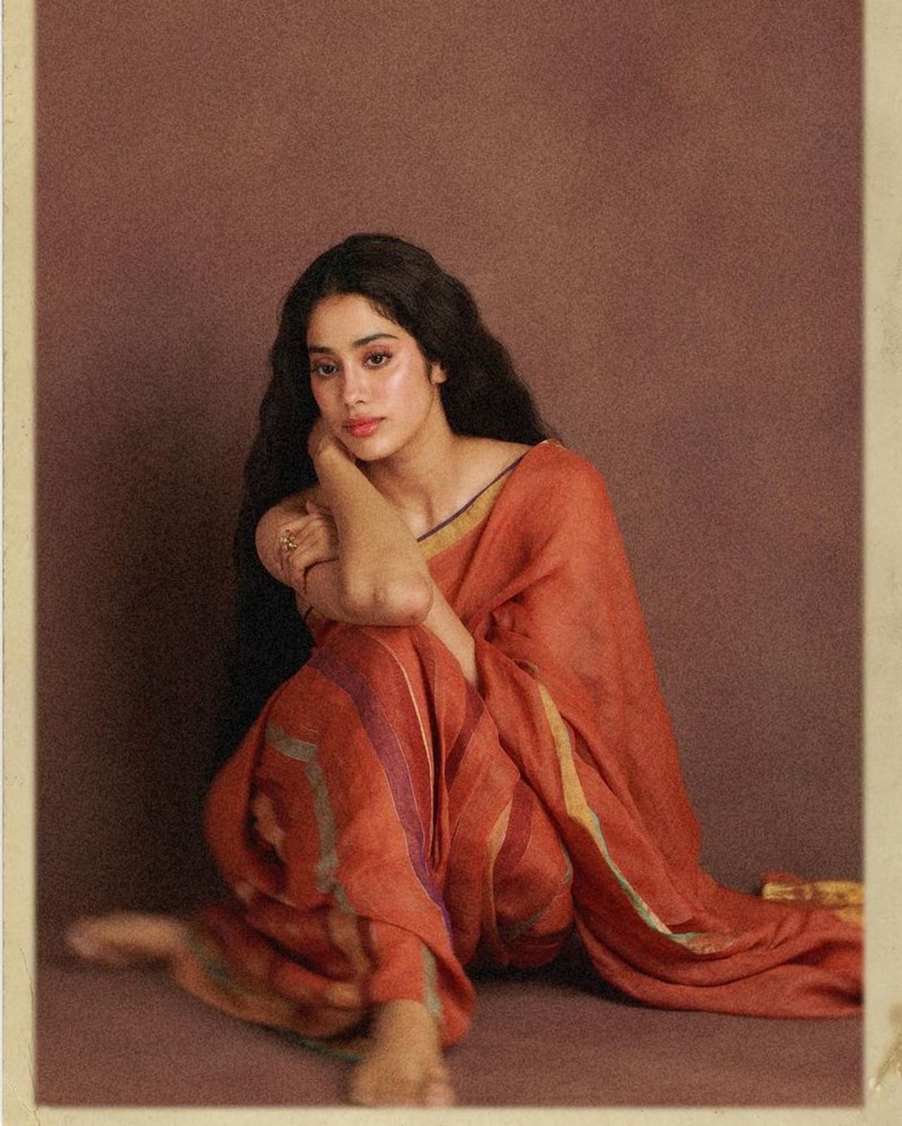 రవి వర్మ గీసిన బొమ్మలా అద్భుతంగా కనిపిస్తోంది జాన్వీ. ఆమె రవి వర్మ పెయింట్లా పోజులిస్తూ ఆశ్చర్యపరుస్తుంది. రెడ్ కలర్ చేనేత కాటన్ శారీ కట్టి సిట్టింగ్ పొజిషీయన్లో కెమెరాకి పోజులిచ్చింది. ఇందులో ఆమె పరువాలకు చీర చుట్టుకుని హోయలు పోయింది.
