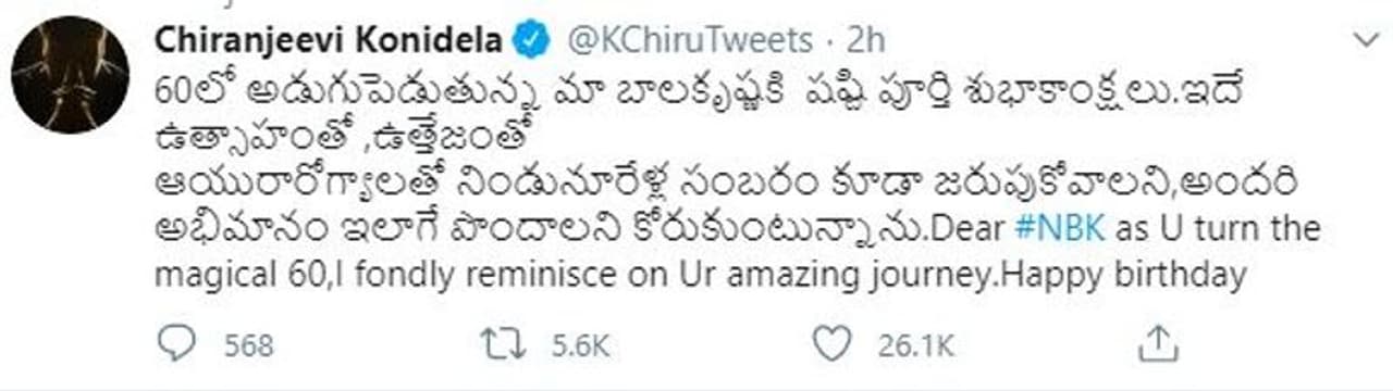 నందమూరి నటసింహం బాలకృష్ణ పుట్టిన రోజు సందర్బంగా అభిమానులు పండగ చేసుకుంటున్నారు. ఇది బాలయ్య 60వ పుట్టిన రోజు కూడా కావటంతో అభిమానుల మరింత గ్రాండ్గా సెలబ్రేట్ చేస్తున్నారు. బయటకు వచ్చి సెలబ్రేట్ చేసే పరిస్థితి లేకపోవటంతో సోషల్ మీడియా వేదికగా రచ్చ చేస్తున్నారు. సినీ ప్రముఖులు, రాజకీయ నాయకులు కూడా బాలయ్యకు శుభాకాంక్షలు తెలియజేస్తున్నారు.