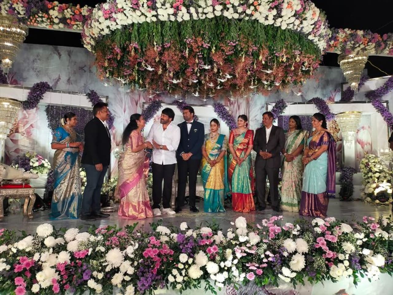 ఈ వివాహ వేడుకకి చాలా మంది సెలబ్రిటీలు కదిలి రావడం విశేషం. వీరిలో ప్రధానంగా సీరియర్ హీరోలు చిరంజీవి, వెంకటేష్, సుమన్, దర్శకుడు బోయపాటి, మురళీ మోహన్, సాయికుమార్, బెల్లంకొండ సురేష్ పాల్గొన్నారు.