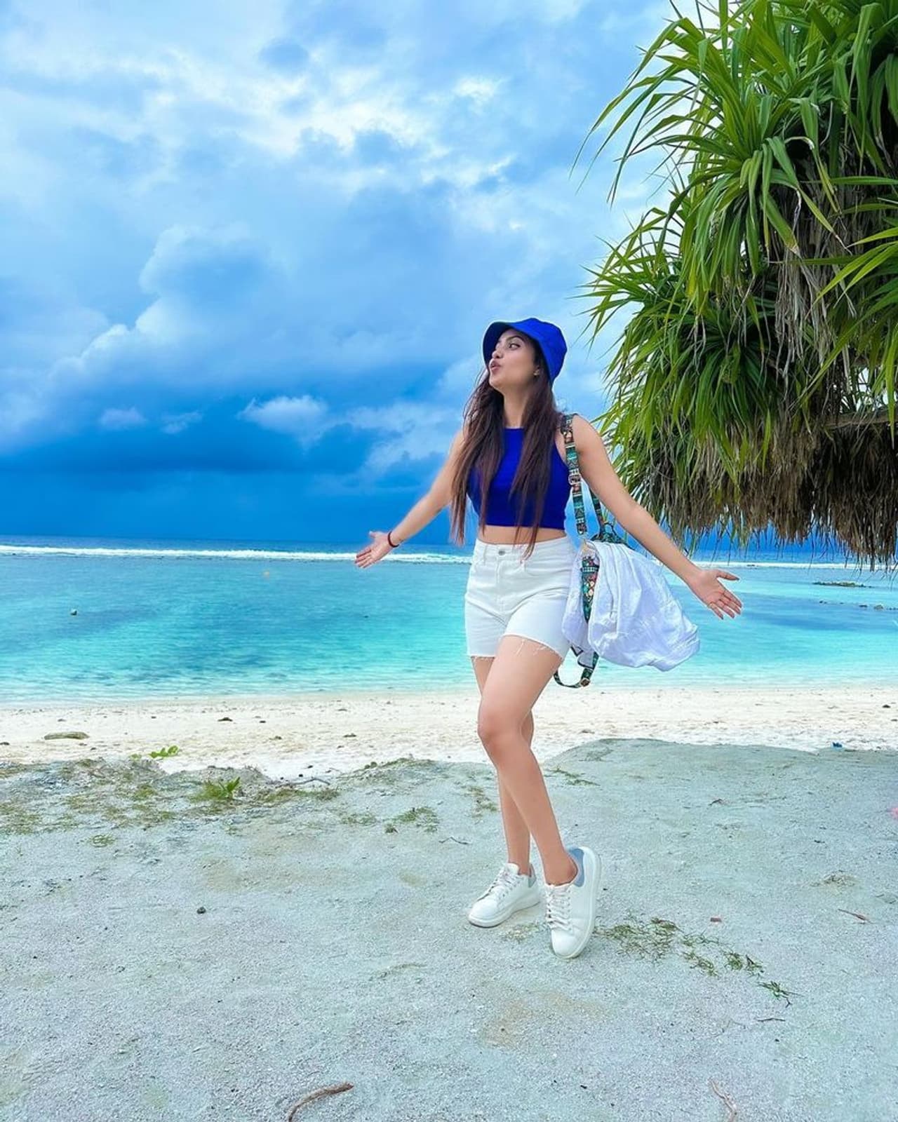 దీపికా పిల్లి ప్రస్తుతం మాల్దీవుల వెకేషన్ లో ఎంజాయ్ చేస్తోంది. తాజాగా ఆ ఫొటోస్ ని సోషల్ మీడియాలో షేర్ చేసింది. మాల్దీవుల బీచ్ లో పొట్టి నిక్కర్ ధరించి దీపికా పిల్లి చేస్తున్న రచ్చ అంతా ఇంతాకాదు. పిక్చర్ పర్ఫెక్ట్ అనిపించేలా హాట్ స్ట్రక్చర్ తో కవ్వింపు చర్యలు చేపడుతోంది.