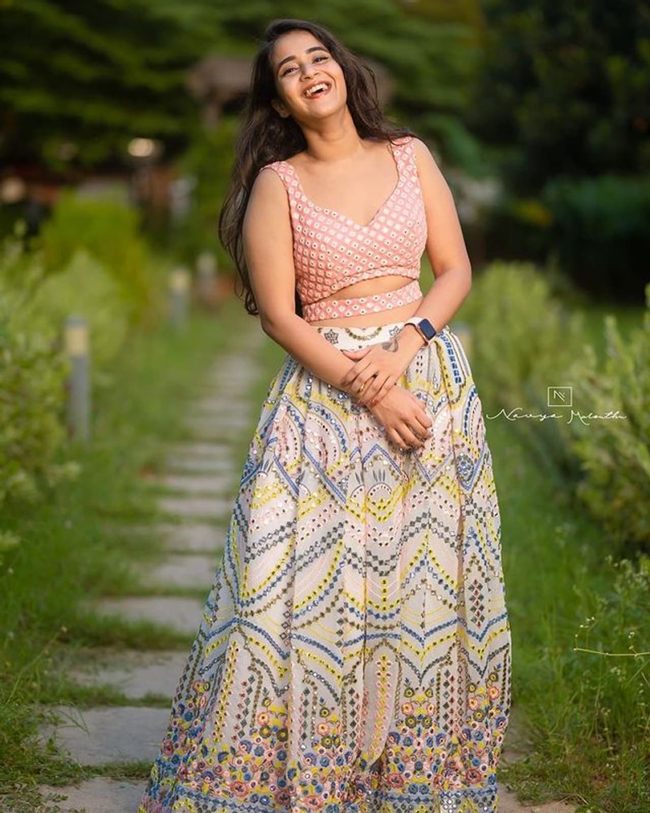తాజాగా పింక్ టాప్, డిజైనర్ లెహంగాలో మెరిసింది. ఆమె గ్లామర్ మెరుపులు ఆస్వాదించేందుకు కుర్రాళ్లకు రెండు కళ్ళు సరిపోవు. ముద్దులొలికించే అందంతో కుర్రాళ్ళని ఊరించే విధంగా దీప్తి సునైనా ఫోజులు ఇస్తోంది.
