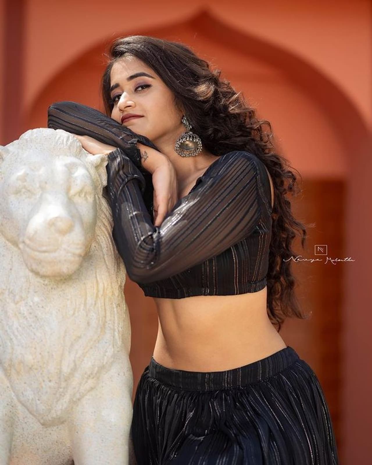 ఈ క్రమంలో తాజాగా దీప్తి మతిపోయేలా ఫొటోషూట్ చేసింది. ఆ ఫొటోలను ఇన్ స్టా గ్రామ్ ద్వారా ఫాలోవర్స్ తో పంచుకుంది. ఈ పిక్స్ లో ట్రెడిషనల్ లుక్ లో కనువిందు చేసింది. డార్క్ డ్రెస్ లో దీప్తి అందాల జాతర అదర్స్ అనిపించేలా ఉంది. లెహంగా వోణీ ధరించిన యంగ్ బ్యూటీ గ్లామర్ షోలో తగ్గేదే అంటోంది.