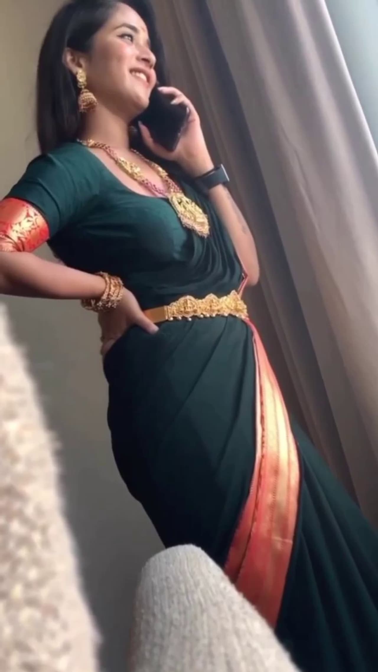 నల్ల చీర ధరించిన దీప్తి సునైనా మేడలో పెద్ద ఆభరణం, నడుముకు వడ్డాణంతో దేవతలా ఫోజులు ఇస్తోంది. దీనితో దీప్తి సునైనా చూపు తిప్పుకోలేని విధంగా వివిధ యాంగిల్స్ లో ఫోజులు ఇస్తోంది.