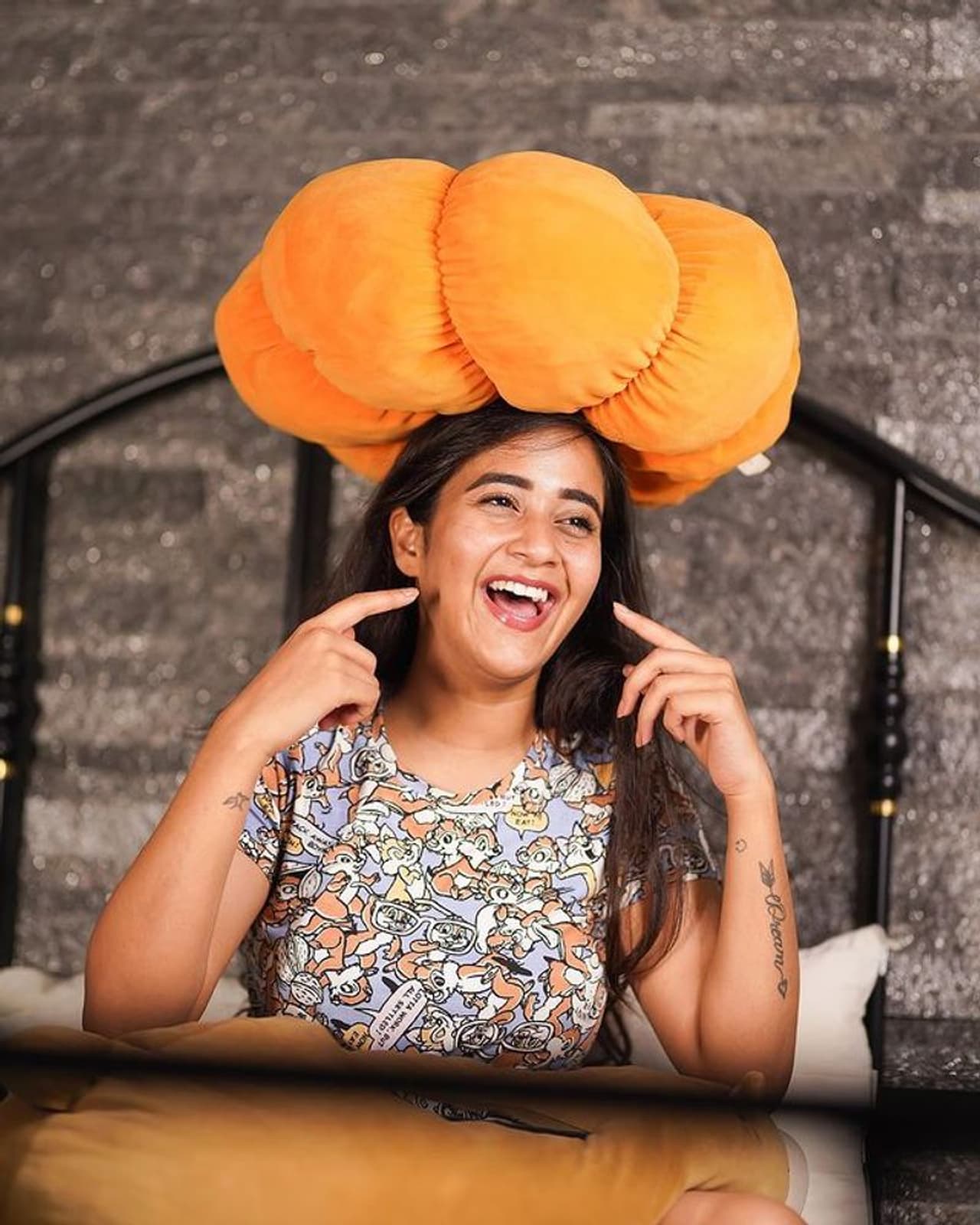 హాట్ బ్యూటీ దీప్తిసునైనా(Deepthi Sunaina) అందాల విందుతో కనువిందు చేస్తుంది. లేటెస్ట్ గా బెడ్పైనే దిగిన ఫోటోలను ఇన్స్టాగ్రామ్ ద్వారా పంచుకుంది. బెడ్పై నిద్ర లేవగానే ఇలా కొంటెగా పోజులిచ్చింది. తలపై గుమ్మడికాయని పోలిన దిండుని పెట్టుకుని చిలిపిగా కనువిందు చేస్తుంది దీప్తి సునైనా.