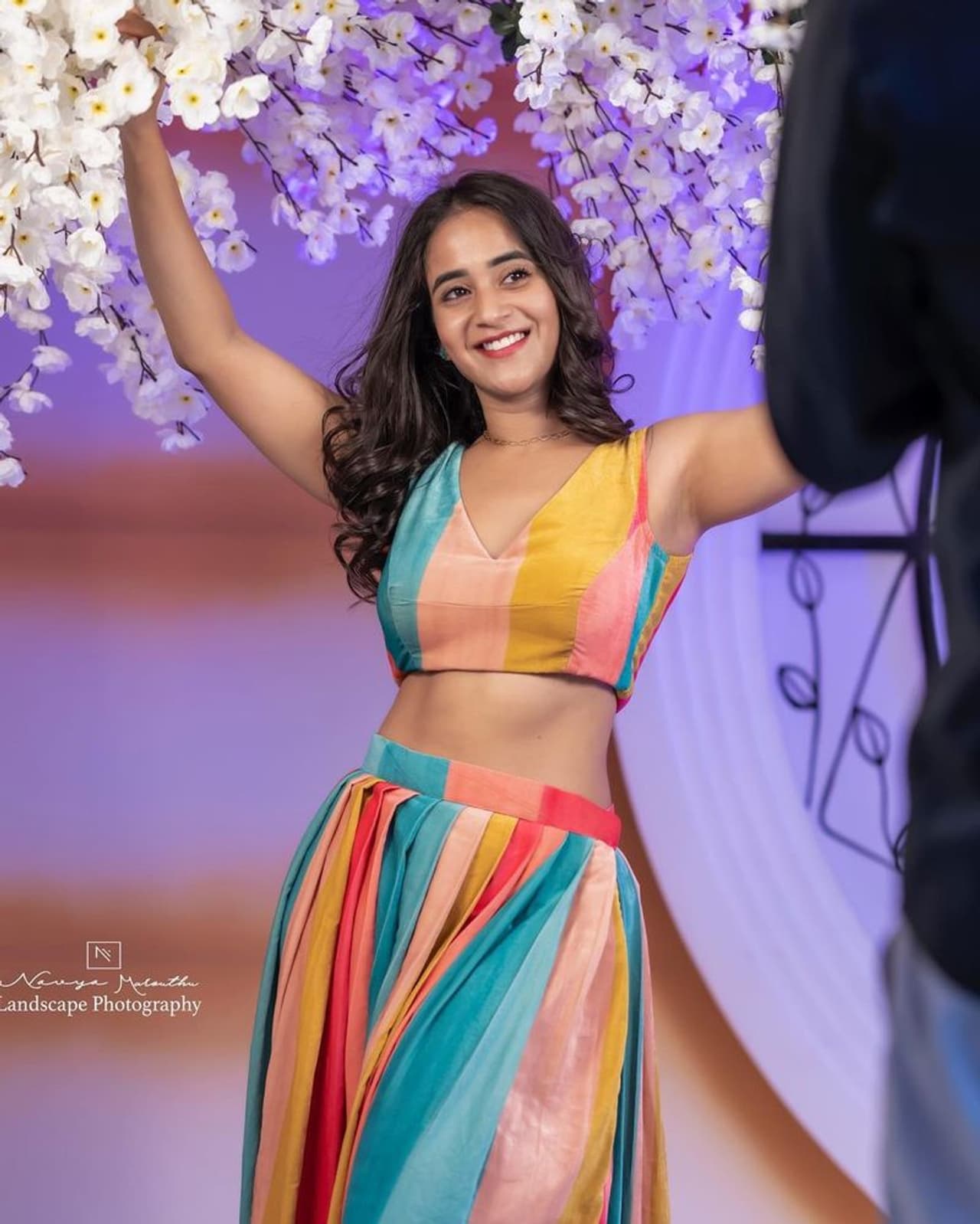 యూట్యూబ్ స్టార్గా పాపులర్ అయిన దీప్తి సునైనా తాజాగా కలర్ ఫుల్ డ్రెస్లో అంతకంటే కలర్ఫుల్ అందాలతో ఆకట్టుకుంటుంది. కుర్రాళ్లని ఆకర్షిస్తుంది. ఆమె బిగువైన బ్లౌజ్, లెహంగా ధరించి లేటెస్ట్ గా ఫోటో షూట్ చేసింది. ఇందులో చేతులు పైకెత్తి పోజులివ్వడం విశేషం.