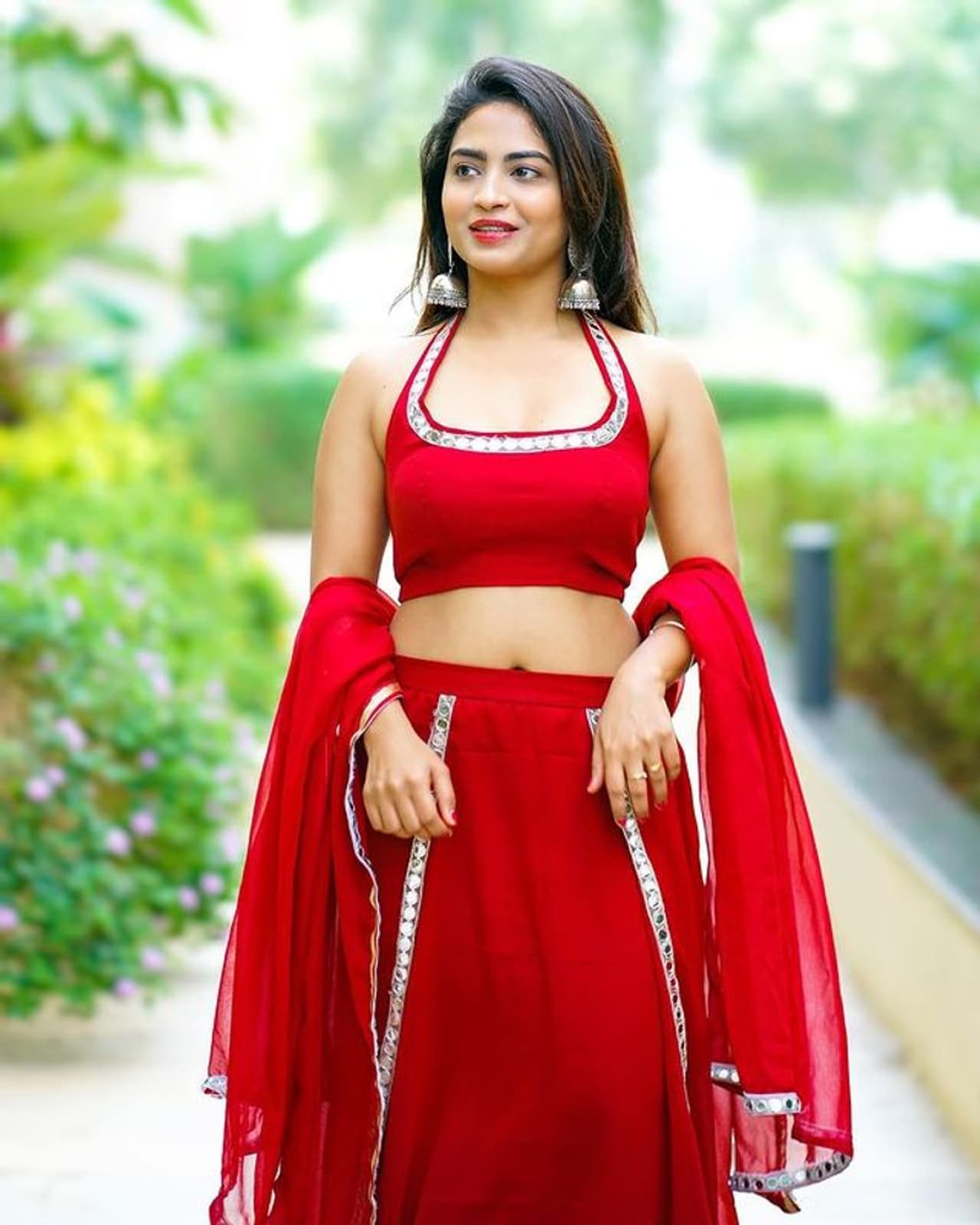 రెడ్ కలర్ డ్రెస్ లో దర్శనమిచ్చిన దేత్తడి బ్యూటీ ఏంజెల్ ను తలపించేలా రెడీ అయ్యింది. మరోవైపు తన నాభి కూడా కనిపించేలా స్టిల్స్ ఇస్తూ కుర్రాళ్ల మతిపోగొడుతోంది.