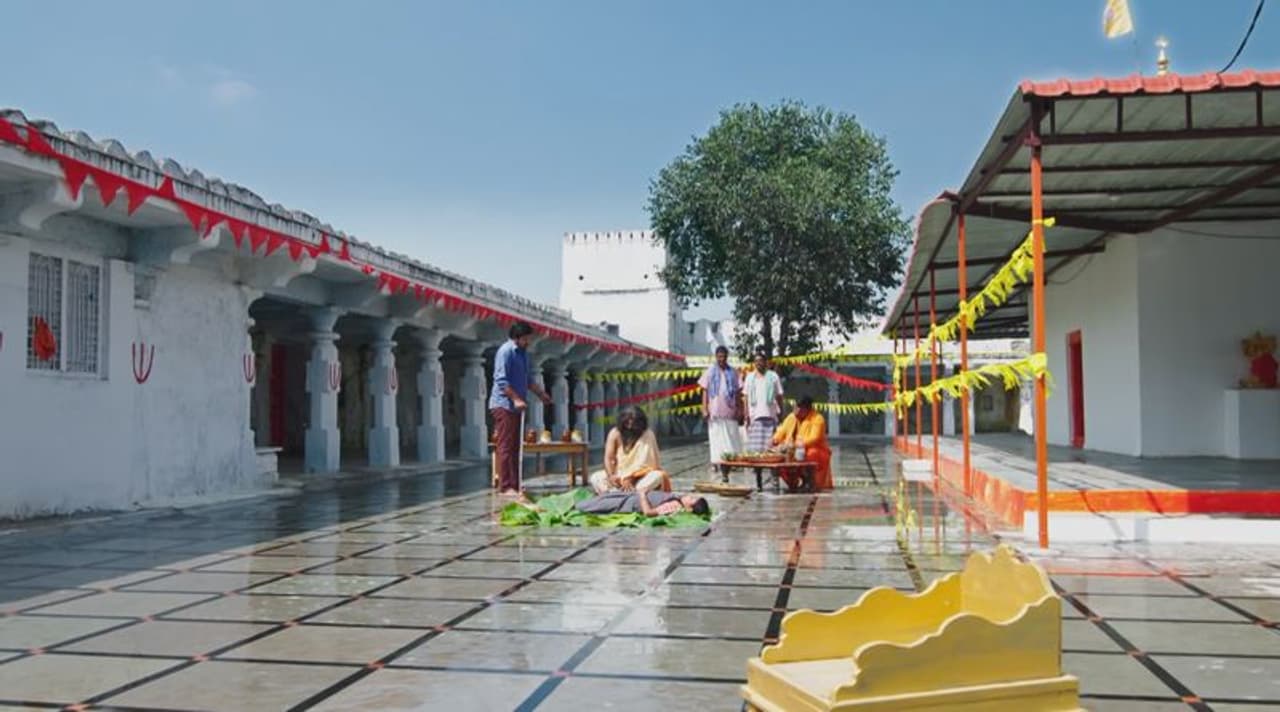 అప్పుడు మాధవ్ మనసులో, ఈపాటికి ఆదిత్య గాడు రాధ రావాలి కదా ఇంకా రాలేదేంటి అని అనుకుంటాడు. అదే సమయంలో ఆదిత్య రుక్మిణి ఆ గూడెంలో ఉన్న వాళ్ళందరికీ దేవి ఫోటో చూపిస్తూ ఈ అమ్మాయిని చూశారా అని అడుగుతారు. అలాగా చాలామందిని అడిగిన తర్వాత ఒక వ్యక్తి ఈ అమ్మాయి గుడిలో పూజారి గారు దగ్గర ఉన్నది పాపం తను స్పృహ తప్పి ఉన్నది అని అనగా, ఏమైంది దేవి స్పృహ తప్పి ఉండడం ఏంటి? పూజారి గారి దగ్గర వైద్యం తీసుకోవడం ఏంటి ఏమైంది అని వాళ్ళు కంగారు పడతారు.అప్పుడు వాళ్ళు మీరేం భయపడొద్దు.