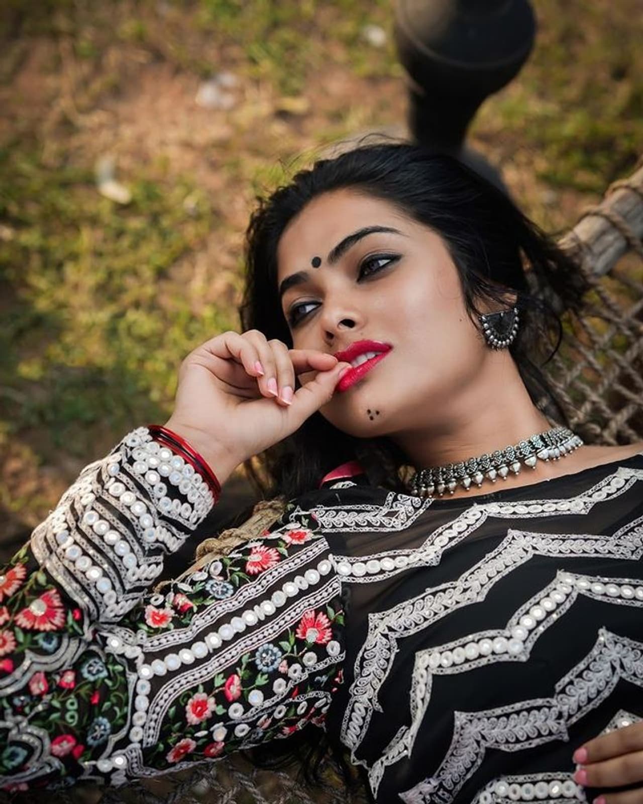 తన రెడ్ లిప్స్ తో దివి అందాలు ఆరబోస్తోంది. మునిపంటితో పెదవులని, వేళ్ళని సుతిమెత్తగా కొరుకుతూ ఇస్తున్న ఫోజులు కుర్రాళ్లకు పిచ్చెకిస్తున్నాయి. ఈ ఫోటోలకు దివి 'నీ చూపులే నా ఊపిరి' అంటూ కామెంట్ పెట్టింది. ఇక ఆమె ఫ్యాన్స్ అయితే మాటల్లేవు ముద్దులే అంటూ హాట్ హాట్ కామెంట్స్ చేస్తున్నారు. దివి అవుట్ ఫిట్ అయితే కళ్ళు చెదిరేలా ఉంది.
