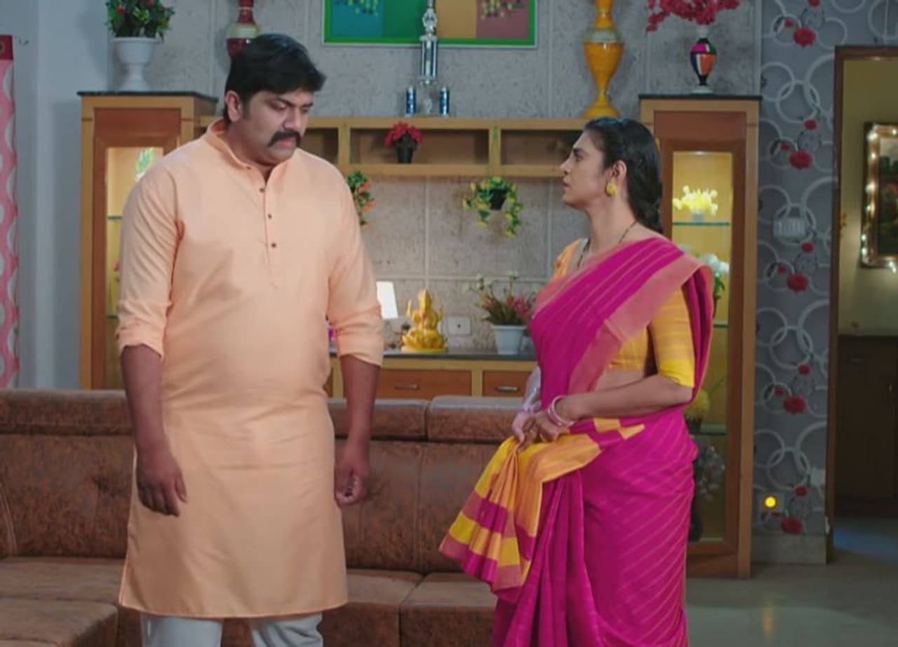 మరోవైపు నువ్వు నన్ను చూసుకో, నేను నీకు కావలసిన పనులన్నీ చూసుకుంటాను కంటి సైగ చెయ్యు చాలు పనులన్నీ చక చక చేసేస్తాను అని రాజ్యలక్ష్మి తో చెప్తాడు బసవయ్య. ఇంతలో తన భార్య వచ్చి కంటి సైగతో ఏదో చెప్తుంది. అర్థం కాని బసవయ్య ఏంటి అని అడుగుతాడు. ఇప్పుడే చెప్పారు కదా కంటి సైగతో పనులు చేసేస్తానని మరి అర్థం చేసుకోవడం లేదేమి అంటుంది ఆవిడ. నేను చెప్పింది మా అక్కయ్య కోసం, నీ కోసం కాదు అంటూ పెళ్ళాం మీద కేకలు వేస్తాడు బసవయ్య.