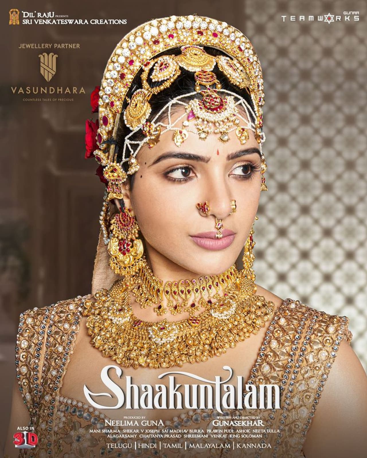 ఇక `శాకుంతలం` చిత్రంలోని శకుంతల, దుష్యంతుడు ధరించిన బంగారు, వజ్రాల అభరణాలు, దుస్తులను వసుంధర జ్యూవెల్లరి వారే తయారు చేసినట్టు చెప్పారు గుణశేఖర్. వసుంధర, ప్రముఖ డిజైనర్ నీతా లుల్లా, నేహ వంటి వారు ఈ డిజైన్స్ చేశారని తెలిపారు. శకుంతల పాత్రకి 15కేజీల బంగారంతో 14 రకాల ఆభరణాలు చేశారట, అలాగే దుష్యంతుడి పాత్ర కోసం దాదాపు పది కేజీల బంగారు ఆభరణాలు, మేనక పాత్ర ధారి అయిన మధుబాల కోసం ఆరు కోట్లతో వజ్రాలు పొదిగిన దుస్తులను, బంగారు ఆభరణాలను తయారు చేయించామని వెల్లడించారు. ఇవన్నీ చేతితో చేసిన ఆభరణాలని, వీటిని ధరించడం వల్ల ఆయా పాత్రలకు అందం వచ్చిందని, అంతిమంగా అది సినిమాకి అందాన్ని తీసుకొచ్చిందన్నారు. శాకుంతలం సినిమాని ప్రకటించగా, అదే అన్నింటిని సమకూర్చుకుందని, అంతా కలిసి వచ్చారని మా వర్క్ ఈజీ అయ్యిందని చెప్పారు.