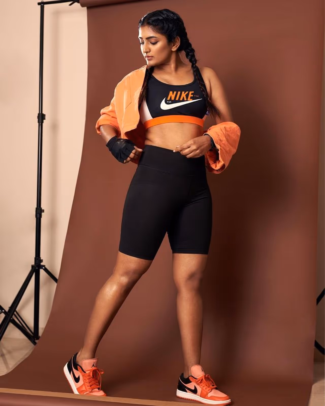 టాప్ టూ బాటమ్ బిగువైన అందాలు చూపిస్తూ ఈషారెబ్బా షాకింగ్ పోజులు.. జాకెట్ తీసేసి వర్కౌట్ లుక్లో కేక
