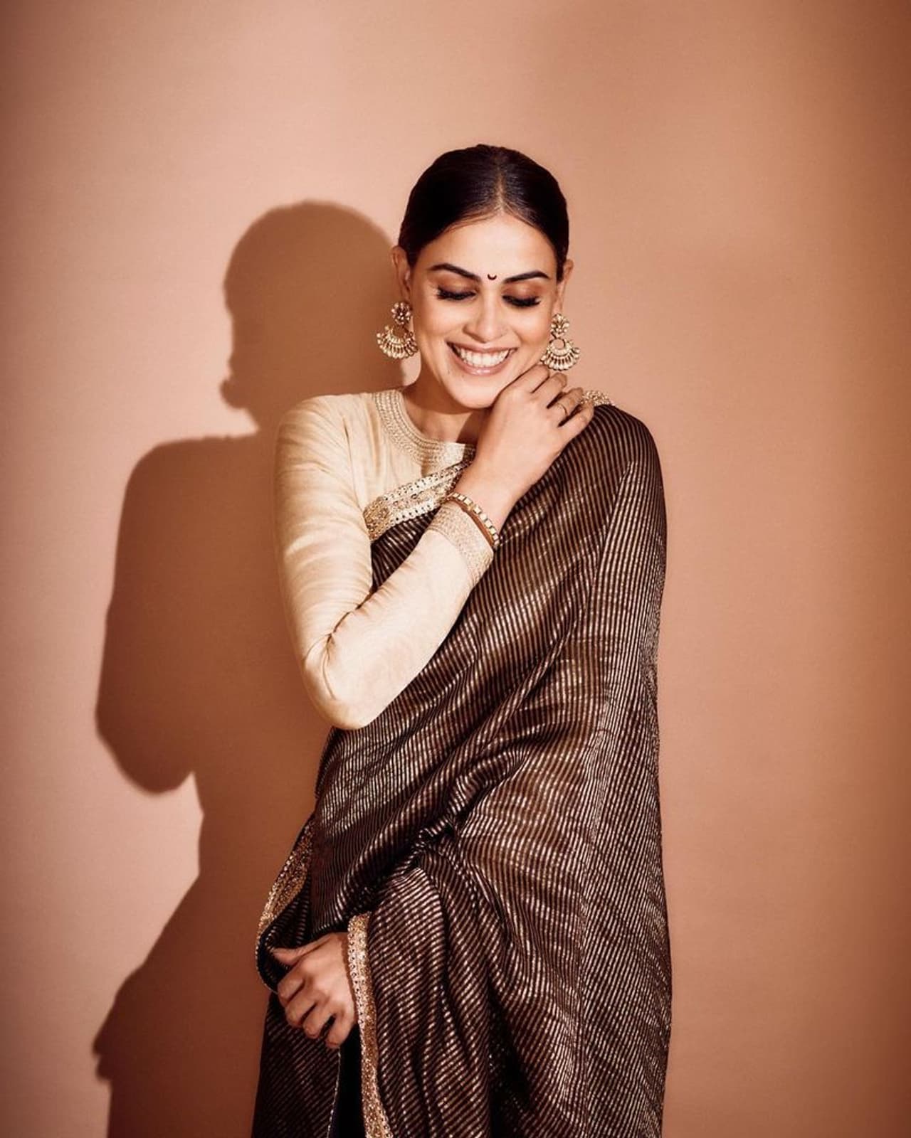 జెనీలియా.. రితేష్ దేశ్ ముఖ్ ని వివాహం చేసుకుని ముంబైలో సెటిల్ అయింది. వివాహం తర్వాత కూడా జెనీలియా నాజూకు అందంలో ఎలాంటి మార్పు లేదు. ఆమె గ్లామర్ ఇంకా పెరుగుతున్నట్లు అనిపిస్తోంది. తాజాగా జెనీలియా అద్భుతమైన చీరలో మెరుపులు మెరిపిస్తూ ఫోజులు ఇస్తోంది.