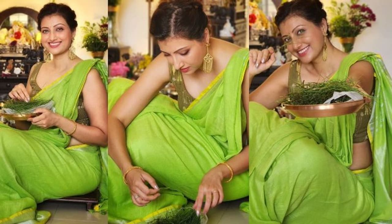 గ్రీన్ శారీ ధరించిన హంసా నందిని తన ఇంట్లో భక్తి శ్రద్దలతో గణేష్ పూజ నిర్వహించింది. ఆ అందమైన దృశ్యాలని అభిమానులతో పంచుకుంది. గ్రీన్ శారీలో హంసా నందిని కనిపిస్తుంటే కుర్రాళ్ళకి తెలియని ఆనందం అంటూ నెటిజన్లు కామెంట్స్ పెడుతున్నారు.