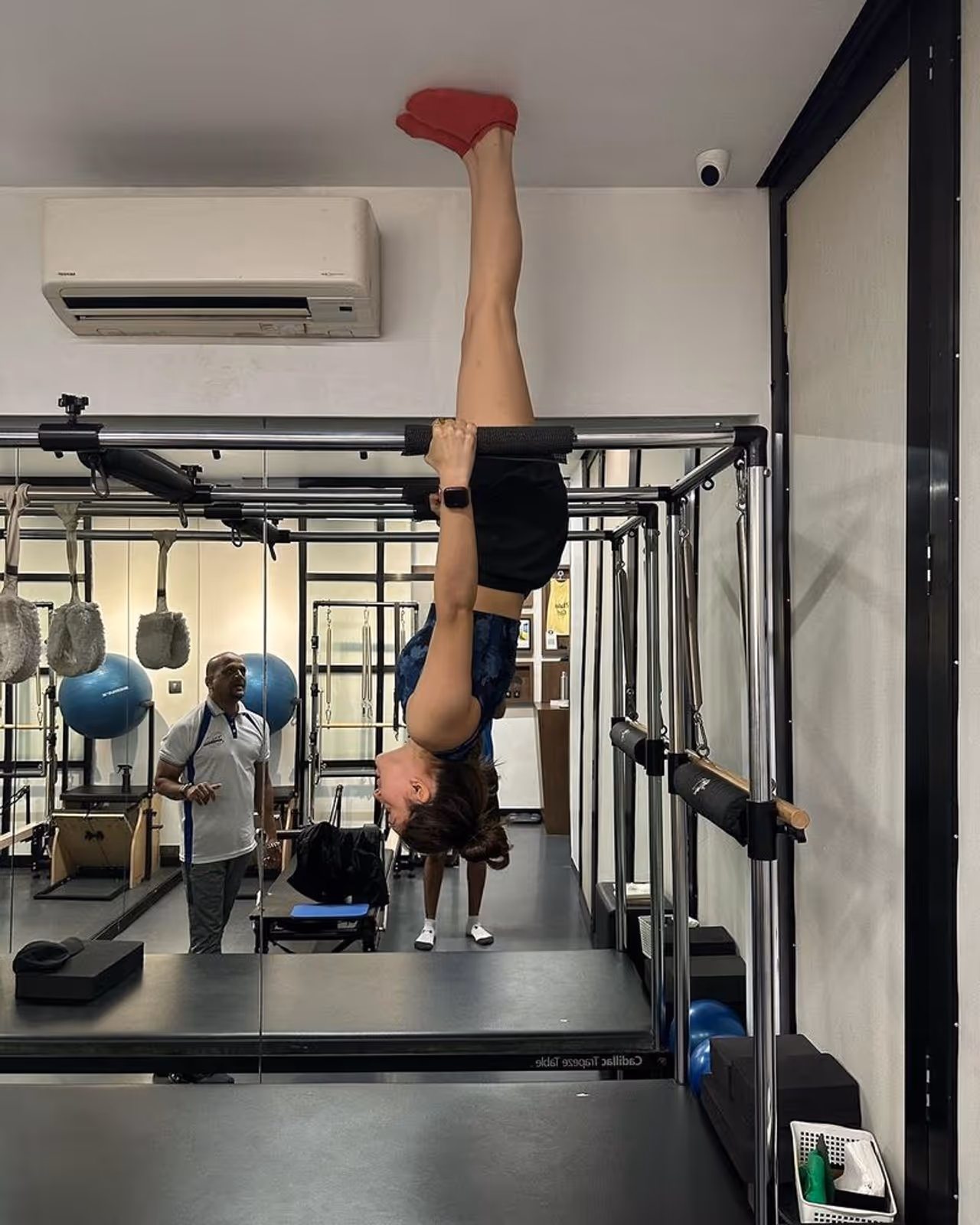 రాడ్ ను చేతులతో పట్టుకొని తలకిందులాగా వేళాడుతూ షాక్ ఇచ్చింది. అలాగే కాళ్ల సాయంతో రాడుకు వేళాడుతూ ఏబీఎస్ వర్కౌట్ చేసి ఆశ్చర్యపరిచింది. బాడీ బిల్డర్స్ చేసే కొన్ని రకాల ఎక్స్ ర్ సైజ్ లు చేస్తూ కనిపించింది. దీంతో నెటిజన్లు షాక్ అవుతున్నారు.