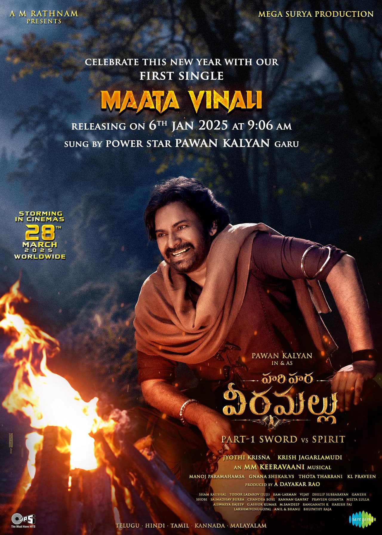 ఈ విషయాన్ని తాజాగా టీమ్ ప్రకటించింది. దీనికి ఎంఎం కీరవాణి సంగీతం అందిస్తుండగా, పెంచల్ దాస్ సాహిత్యం అందించిన ఈ గీతాన్ని పవర్ స్టార్ పవన్ కళ్యాణ్ స్వయంగా ఆలపించడం విశేషం. జనవరి 6వ తేదీన ఉదయం 9:06 గంటలకు విడుదల చేయనున్నట్లు తెలుపుతూ ప్రత్యేక పోస్టర్ ను వదిలారు.