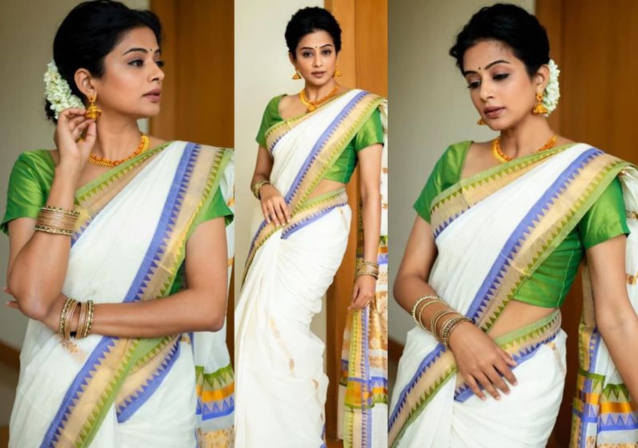 తెల్ల చీర కొప్పున మల్లెలు... కొంగు చాటు నుండి నెలవంక నడుము చూపిస్తూ ప్రియమణి టెంప్టింగ్ ఫోజులు!