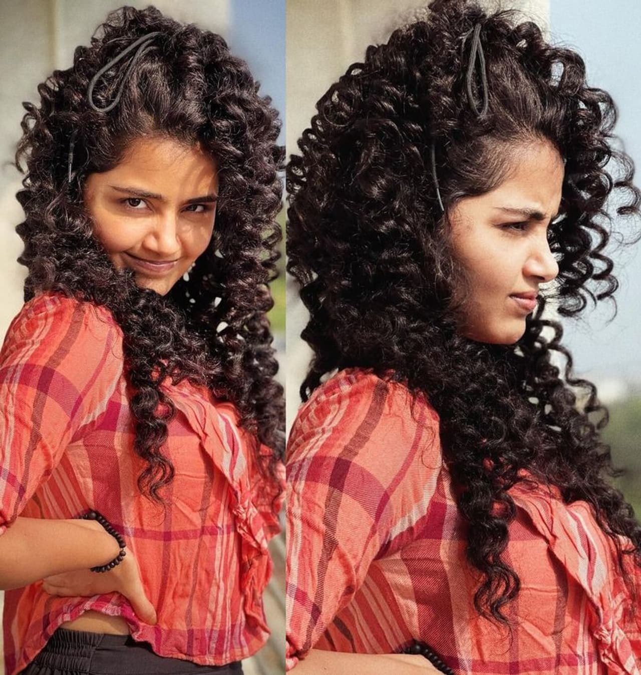 కర్లీ హెయిర్ కిల్లింగ్ లుక్స్... సైడ్ యాంగిల్ నుండి నడుము చూపిస్తూ టెంప్ట్ చేస్తున్న అనుపమ