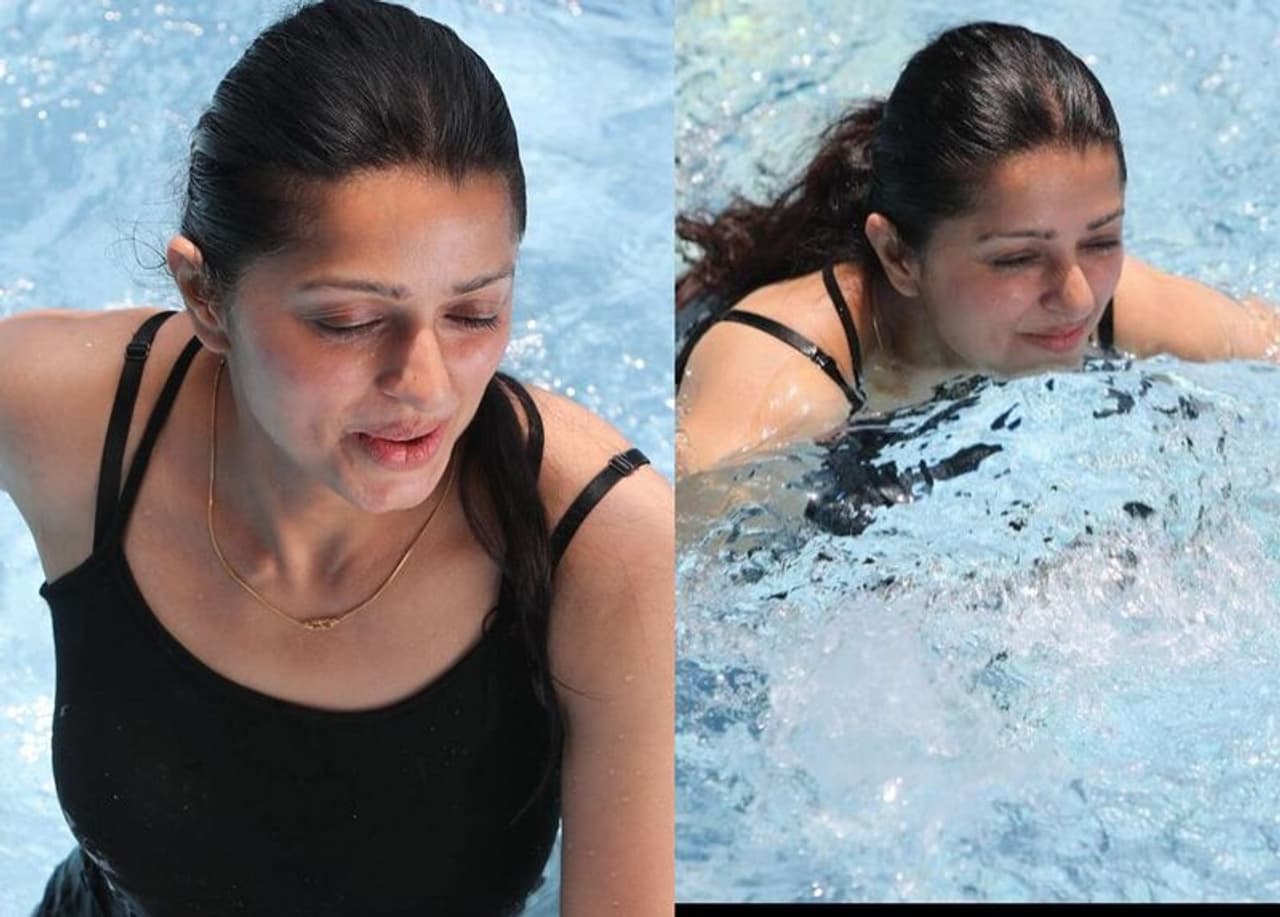 భూమిక (Bhumika Chawla)బికినీలో కనిపిస్తుందని ఎవరైనా అనుకుంటారా. కానీ అది నిజం చేసి చూపించింది ఈ హోమ్లీ బ్యూటీ. బ్లాక్ బికినీ ధరించి స్విమ్మింగ్ ఫూల్ లో జలకాలాడుతూ దర్శనం ఇచ్చింది.