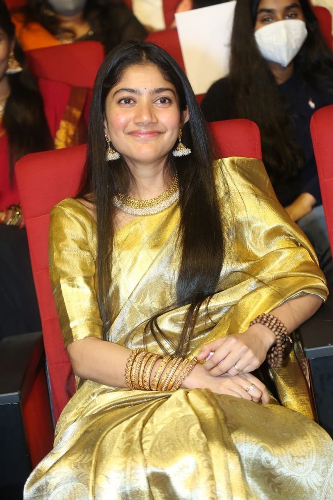 బంగారు రంగు పట్టు చీరలో సాంప్రదాయ అలంకరణలో సాయి పల్లవి అదరగొట్టారు. కట్టిపడేసే వస్త్రధారణకు తోడు సాయి పల్లవి కిల్లింగ్ స్మైల్ వేడుకకు వెలుగు పంచింది. సాయి పల్లవి లేటెస్ట్ ఫోటోలు వైరల్ గా మారాయి.