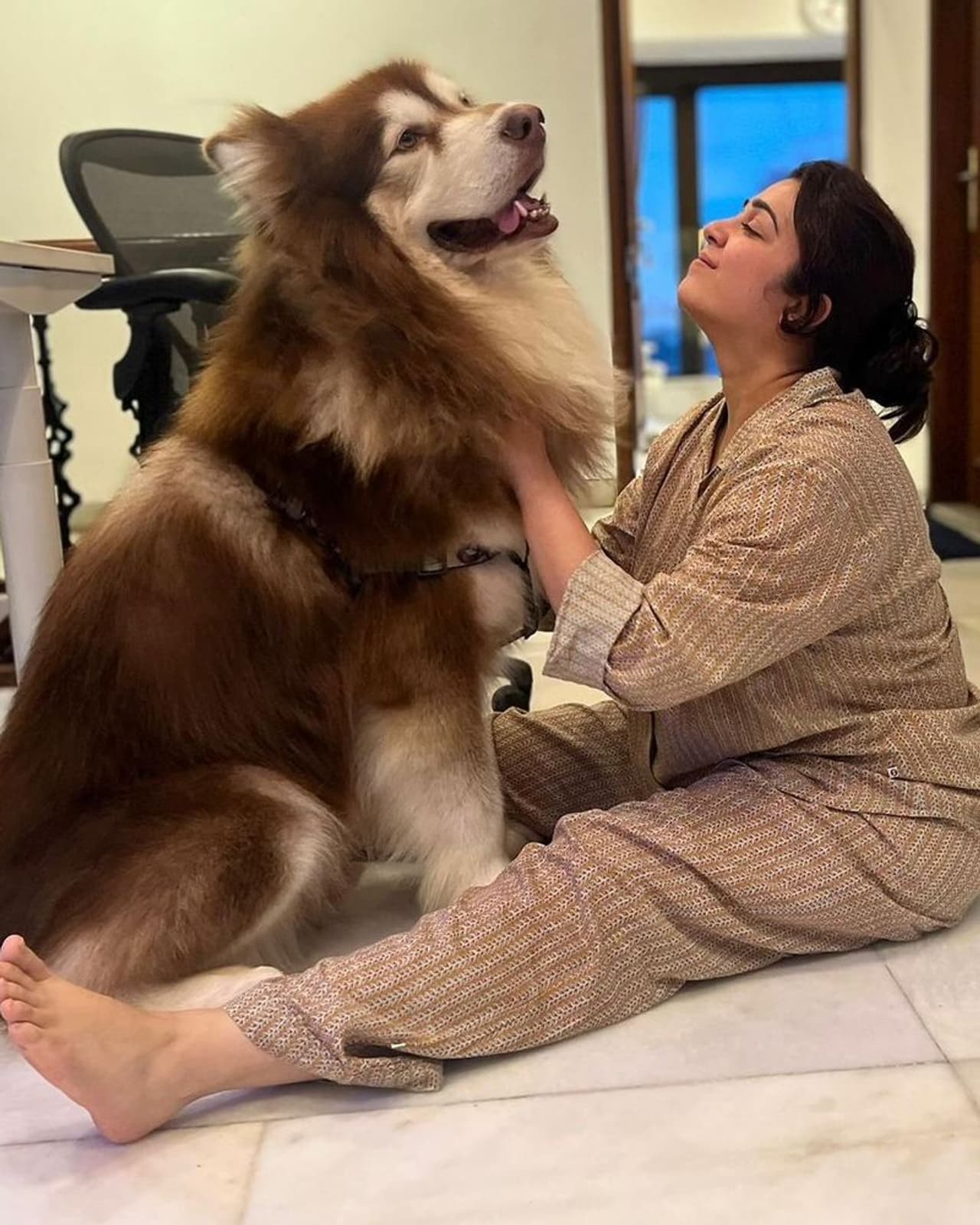 ఇంతకీ ఈ కుక్క ఏ బ్రీడ్ అనుకుంటూ.. కామెంట్లు పెడుతున్నారు. అయితే ఇది అలస్కాన్ మలమ్యూట్ అనే బ్రీడ్ కి చెందిన కుక్క. ఈ బ్రీడ్ కి చెందిన కుక్కలు చిన్నప్పటి నుంచే పెద్దగా ఉంటాయి. పెరిగే కొద్దీ మరింత పెద్దగా అవుతాయి. ఈ కుక్క దాదాపు నాలుగేళ్లుగా ఛార్మి దగ్గరే ఉంది. ప్రస్తుతం ఛార్మి, ఆమె పెంపుడు కుక్క ఫోటోలు వైరల్ గా మారాయి. ఛార్మి దగ్గర ఈ పెద్ద కుక్క కాకుండా ఇంకో చిన్న కుక్క పిల్ల కూడా ఉంది.