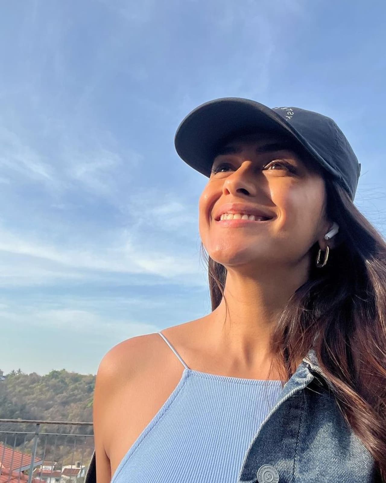 ఆకాశంవైపు చూస్తూ.. చిరునవ్వులు చిందిస్తూ.. నీలం రంగు స్లీవ్ లెస్ టాప్ లో.. చాలీ చాలని బట్టల్లో అందాలు ఆరబోస్తూ.. కనిపించింది మృణాలు ఠాకూర్.