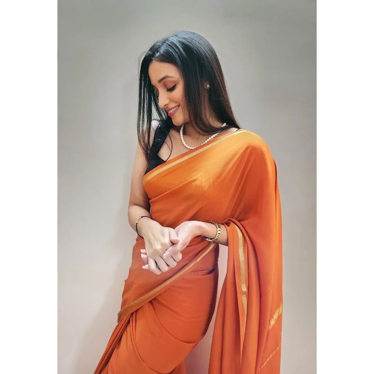తాజాగా మరిన్ని గ్లామర్ ఫొటోలను కూడా పంచుకుంది. ఆరెంజ్ శారీలో, స్లీవ్ లెస్ బ్లౌజ్ లో పరువాలను ప్రదర్శించింది. చీరకట్టులో టాప్ గ్లామర్ షోతో చూపు తిప్పుకోనివ్వకుండా చేసింది. శారీ లుక్ లో యువతను ఉక్కిరిబిక్కిరింది. మరోవైపు అదిరిపోయే ఫోజులతోనూ నెటిజన్ల మతులు పోగొడుతోంది.
