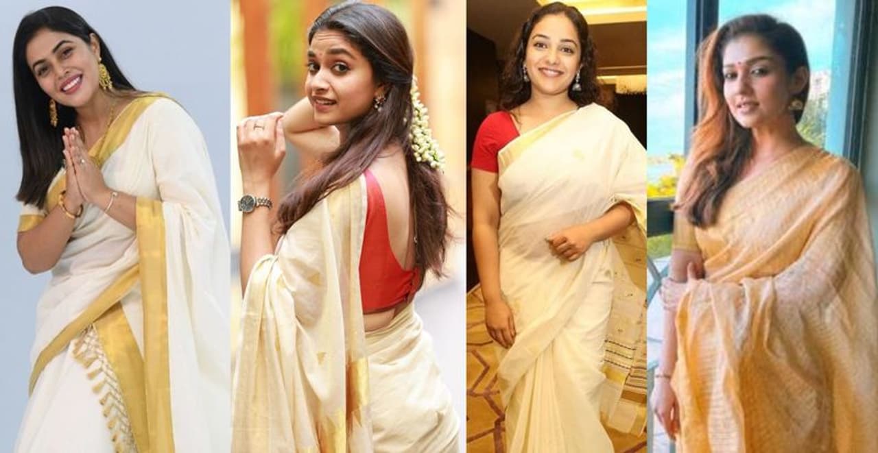 కేరళ భామల ఓనమ్ లుక్స్... ఇంతకీ గోల్డ్ బోర్డర్ కలిగిన క్రీం కలర్ శారీ మాత్రమే ఎందుకు ధరిస్తారు!