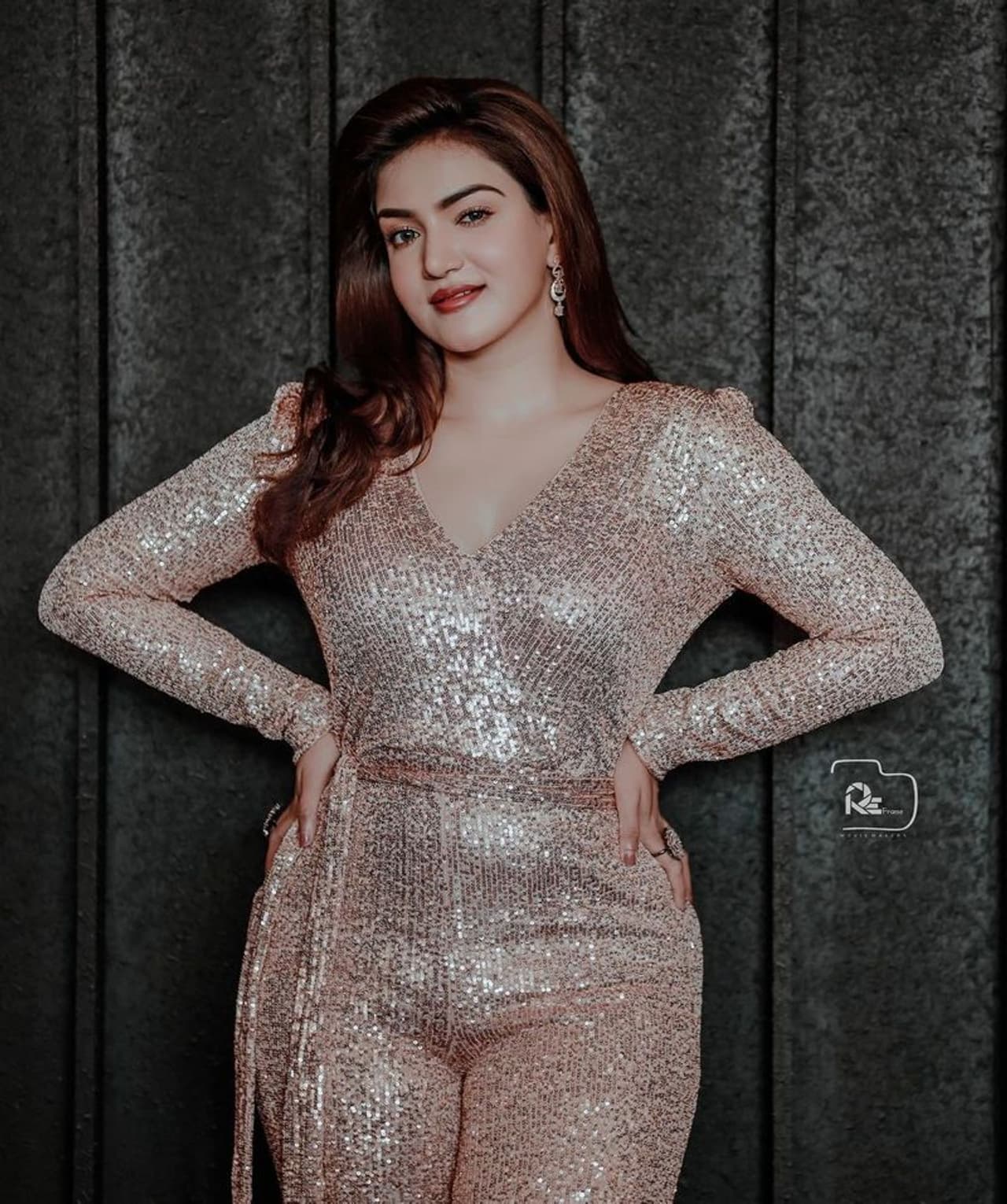 తాజాగా హనీ రోజ్ సోషల్ మీడియాలో తన గ్లామరస్ పిక్స్ పోస్ట్ చేసింది. సిల్వర్ కలర్ టైట్ ఫిట్ డ్రెస్ లో హనీ రోజ్ ఇస్తున్న ఫోజులు చూస్తే కుర్రాళ్లకు కునుకు ఉండదు. నార్మల్ గా హనీ రోజ్ కనిపించిన యువత మైకంలో మునిగిపోతారు. ధగ ధగ మెరుపులతో హనీ రోజ్ ఇస్తున్న ఫోజులు యువతకి మెంటలెక్కించేలా ఉన్నాయి.