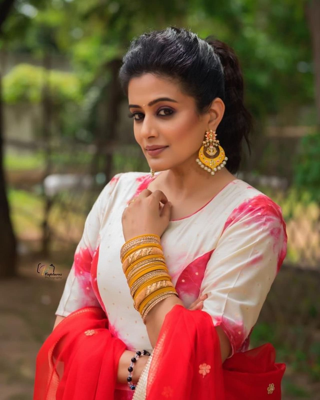 ఇక ఎప్పుడూ హాట్ హాట్ ఫోటో షూట్స్ తో కాకరేపే ప్రియమణి, రూటు మార్చారు. నిండైన గాగ్రా చోళీలో పద్దతిగా దర్శనం ఇచ్చారు . ప్రియమణి ఫోటోలు వైరల్ గా మారాయి.