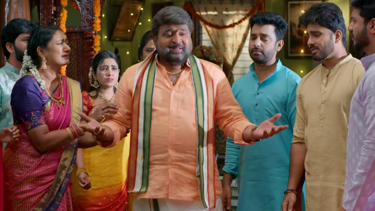 రామరాజు ఏడుస్తూ కింద పడిపోతాడు. దీంతో రామరాజు కొడుకులు, కోడళ్ళు, వేదవతి అందరూ గాభరా పడిపోతూ ఆయనను ఆసుపత్రికి తీసుకువెళ్తారు. రామరాజుని కారులో ఎక్కిస్తుంటే పైనుంచి సేనాపతి, భద్రావతి చూసి చాలా ఆనంద పడతారు. భద్రావతి ‘ఒరేయ్ రామరాజు ఈరోజు నుంచి నీ పతనం మొదలైందిరా’ అంటూ ఆనందంతో నవ్వుకుంటూ ఉంటుంది.