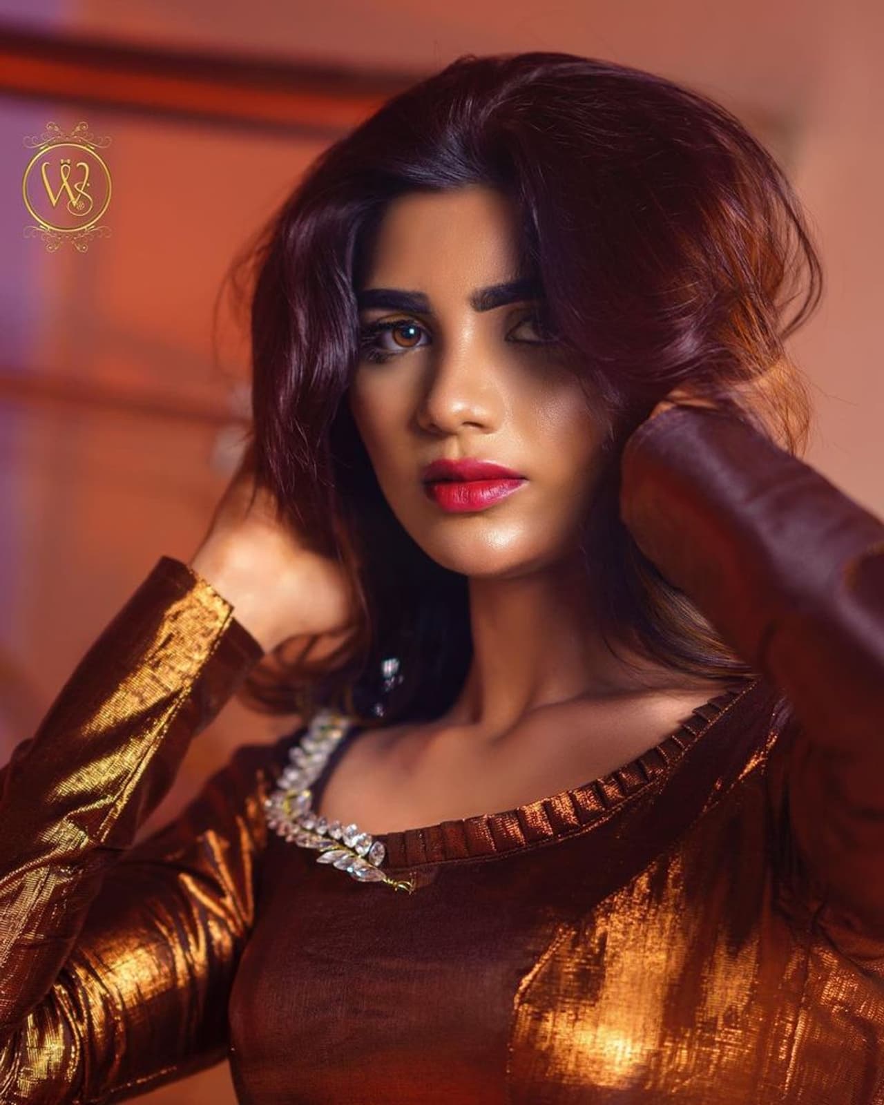 తాజాగా గోల్డ్ కలర్ డిజైనర్ వేర్ లో కిరాక్ పుట్టించారు వర్ష. తెల్లని మేనుపై బంగారు వర్ణపు దుస్తులు, ఆమె గ్లామర్ ని మెరిసిపోయేలా చేశాయి.