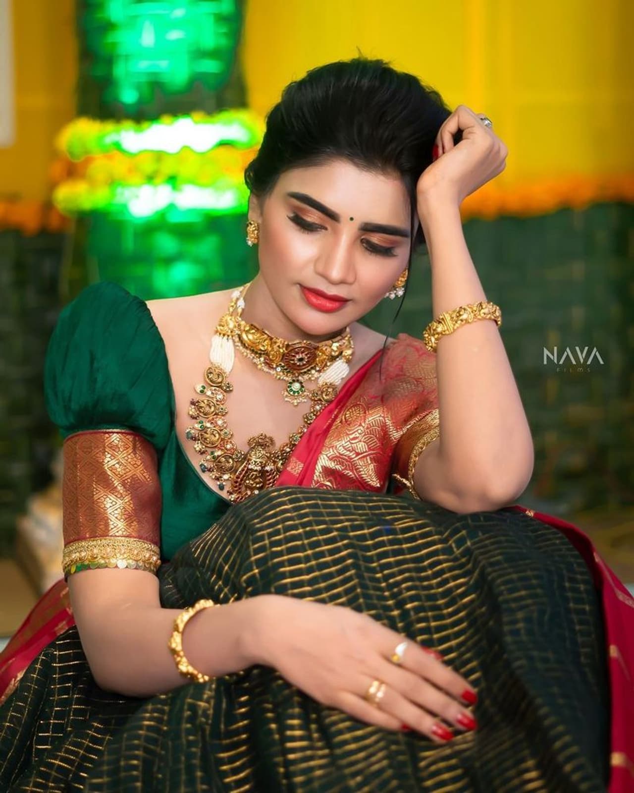 గులాబీ రంగు అంచు కలిగిన చిలకపచ్చ చీర, జాకెట్ ధరించి దీపావళి దీపంలా మెరిసిపోయింది. పండగ వేళ పద్దతిగా సిద్ధమైన వర్షను చూసి ఫ్యాన్స్ క్రేజీగా ఫీల్ అవుతున్నారు. కామెంట్స్, లైక్స్ రూపంలో అభిమానం చాటుకుంటున్నారు. ప్రస్తుతం వర్ష లేటెస్ట్ ఫోటోలు వైరల్ గా మారాయి.