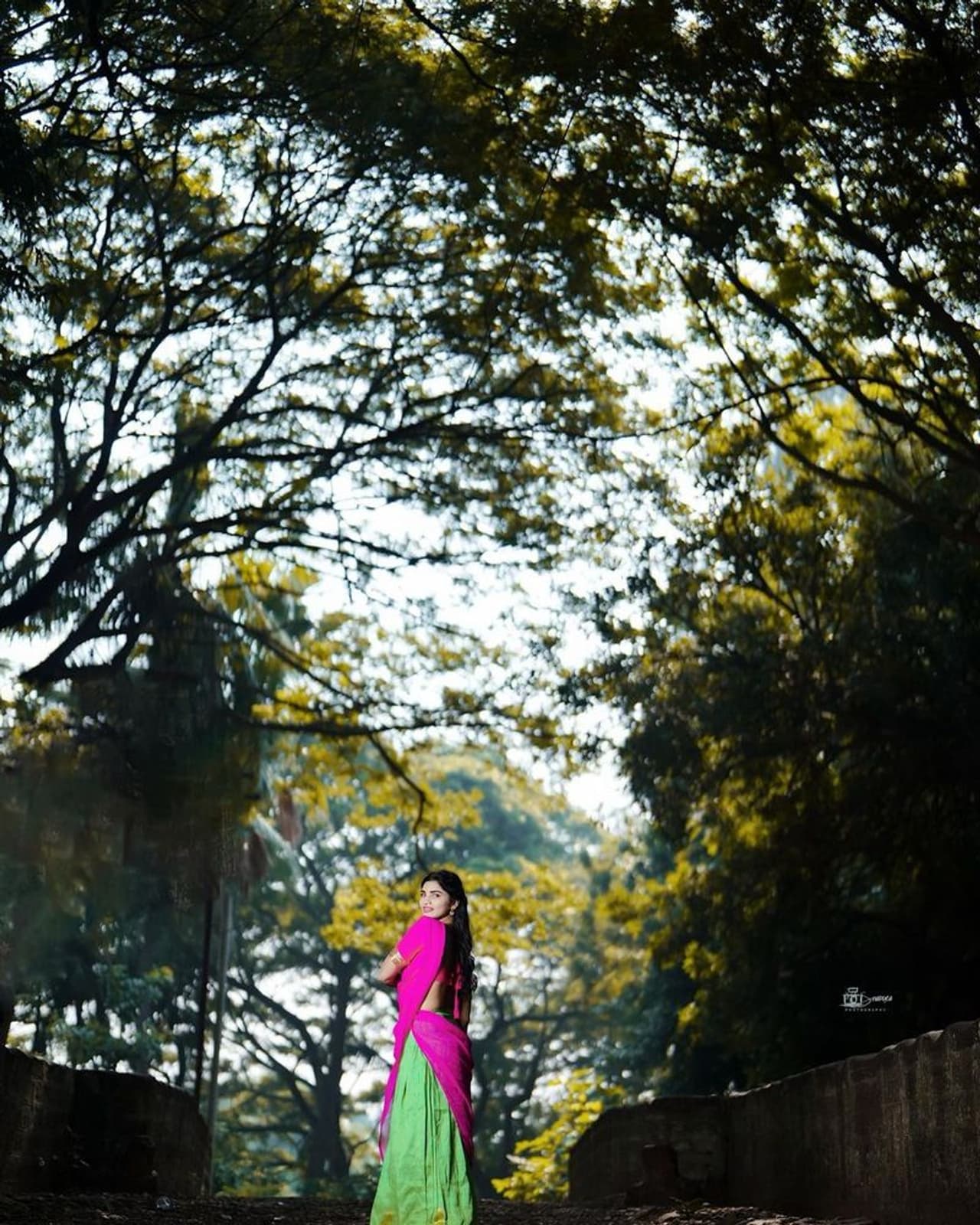 వర్ష అందం హాఫ్ శారీలో మరింత పెరిగిపోయింది. సహజంగా పొట్టి దుస్తులు, ట్రెండీ వేర్లో స్కిన్ షో చేస్తూ అందాలు చూపిస్తే హాట్ గా కనిపిస్తుంటారు. కానీ వర్ష మాత్రం ట్రెడిషనల్ లుక్లోనే మరింత హాట్గా, మరింత అందంగా కనిపించడం విశేషం. అందుకే ఈ బ్యూటీకి ఫాలోయింగ్ ఎక్కువ. క్రేజూ ఎక్కువే. Varsha Half Saree Photos.