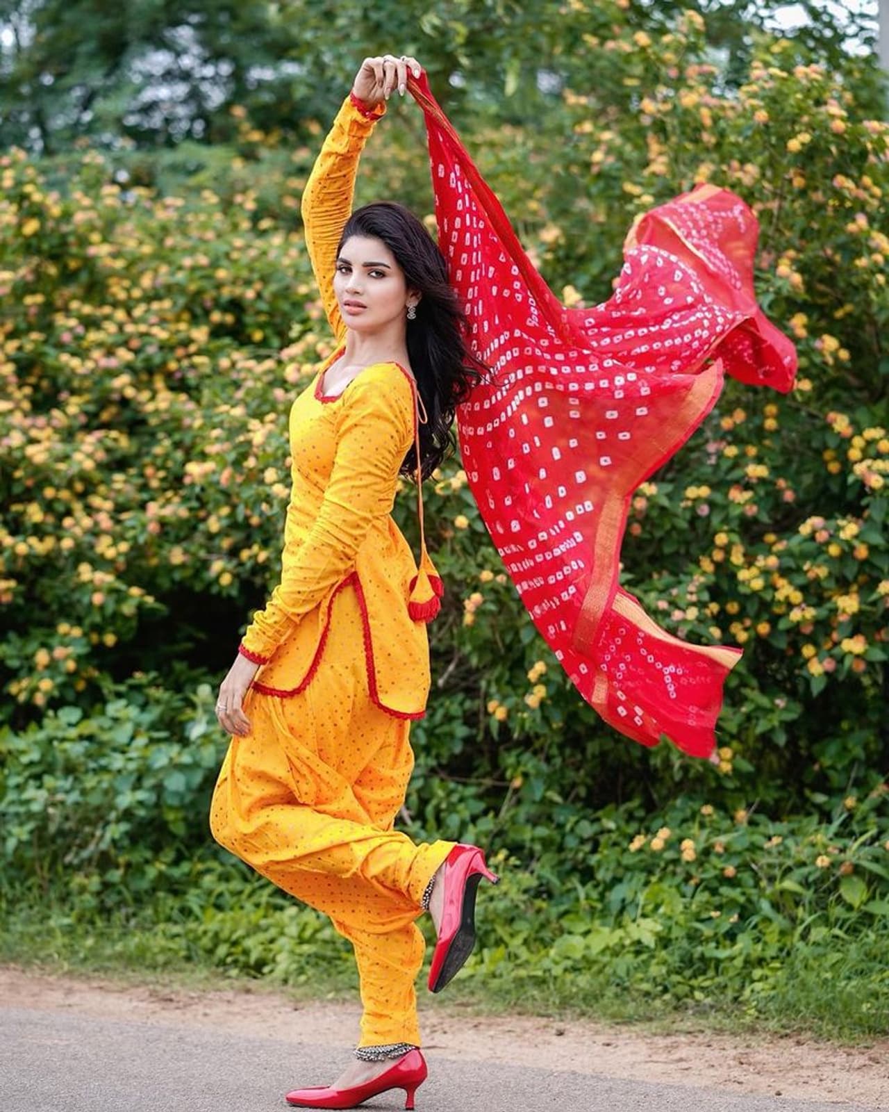 ఈ క్రమంలో తాజాగా వర్ష ట్రెడిషనల్ లుక్ లో దర్శనమిచ్చింది. ఎల్లో చుడీదార్ లో అవుట్ డోర్ ఫొటోషూట్ చేసింది. ఆ ఫొటోలను సోషల్ మీడియా ద్వారా అభిమానులతో పంచుకుంది. ఆ పిక్స్ నెట్టింట వైరల్ గా మారాయి.