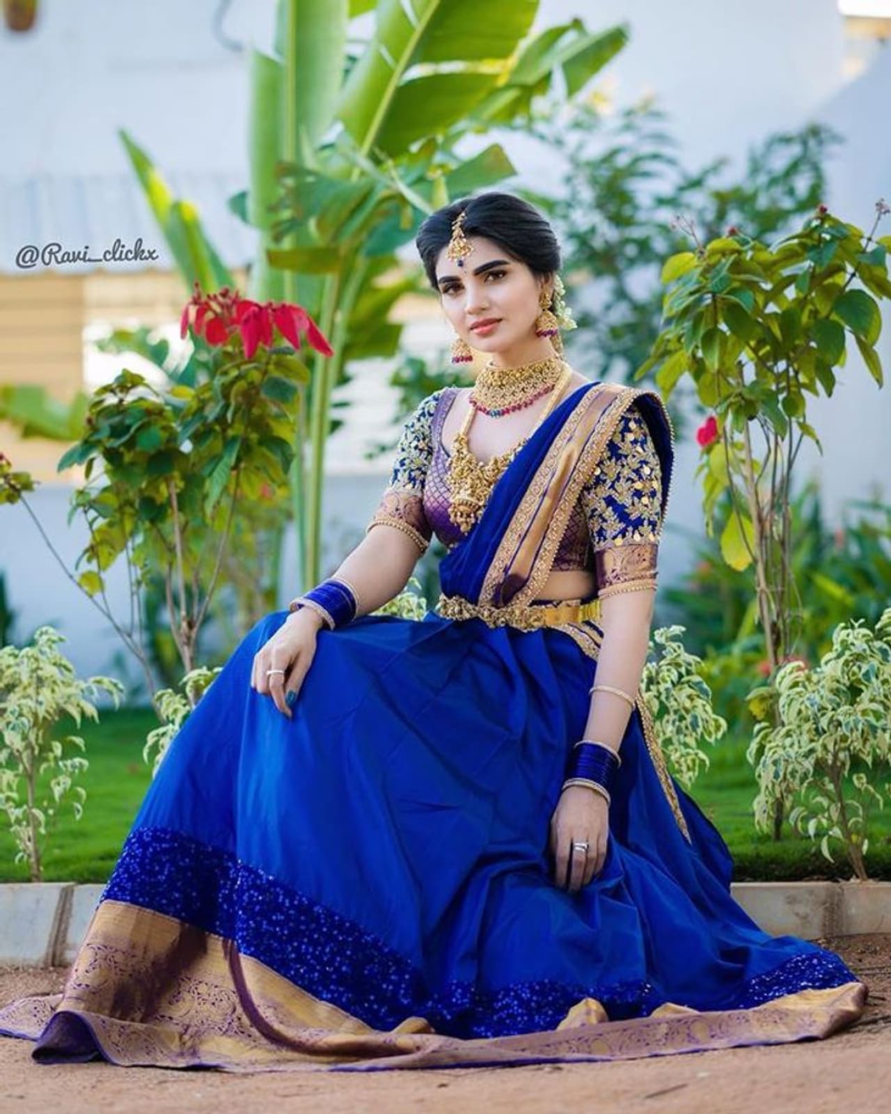 లేటెస్ట్ ఫొటోల్లో కోహినూరు వజ్రంలా మెరిసిపోతోంది వర్ష. బ్లూ లెహంగా, వోణీ, మ్యాచింగ్ బ్లౌజ్ లో ఆకట్టుకుంటోంది. అదేవిధంగా ఒంటినిండా బంగారు నగలు ధరించి తన అందాన్ని రెట్టింపు చేసుకుంది. మరోవైపు వయ్యారంగా పోజులిస్తూ కుర్ర గుండెల్ని కొల్లగొట్టింది.
