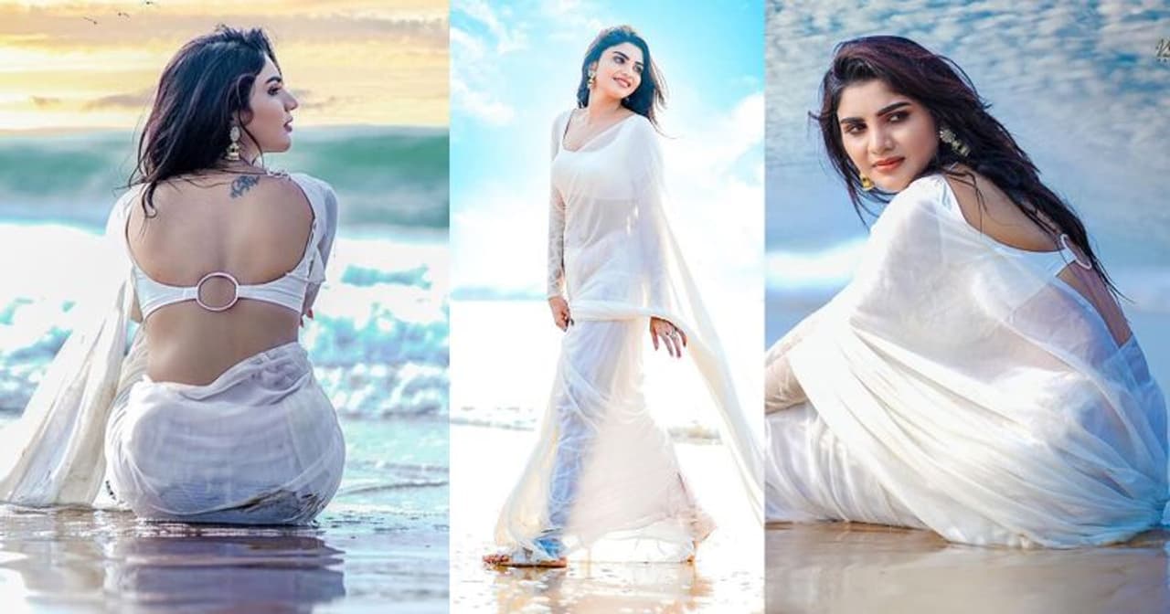 తెల్ల చీరలో తడిసిన ఫోటోలు షేర్ చేసిన వర్ష... బీచ్ లో జలకాలాడుతూ బుల్లితెర స్టార్ సాహసం!