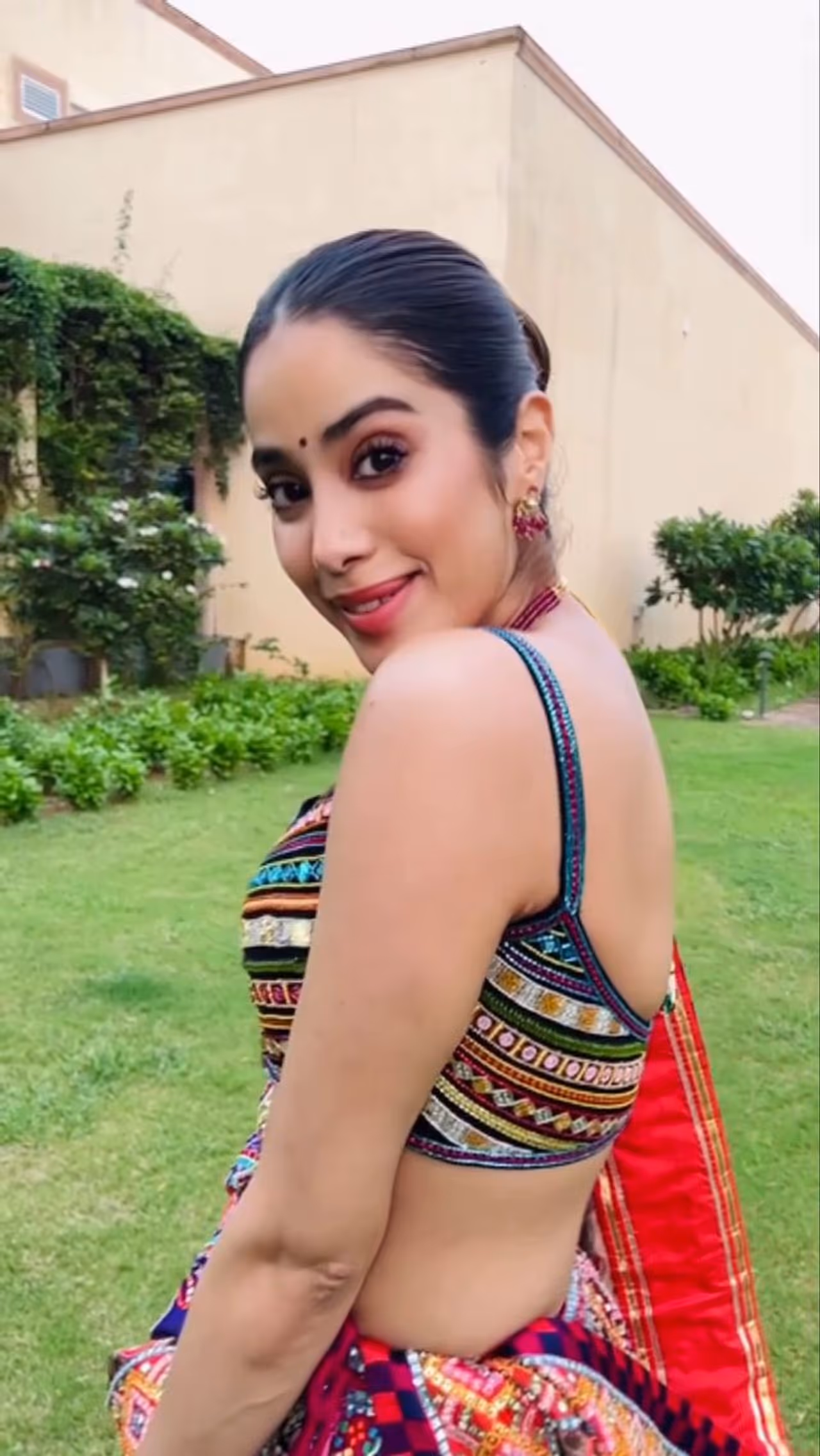 రంగు రంగుల డ్రెస్ లో జాన్వీ రౌండ్లు కొడుతూ క్యూట్ గా హాట్ గా మురిపించింది. నడుము సోగాయాలతో, చిరునవ్వులతో కుర్రకారుని తనవైపు తిప్పుకుంటోంది.
