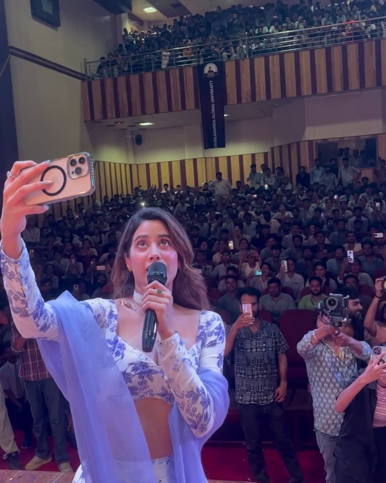 జాన్వీ బాలీవుడ్ లో వరుస చిత్రాలు చేస్తోంది. ప్రస్తుతం జాన్వీ రాజ్ కుమార్ రావు తో కలసి మిస్టర్ అండ్ మిసెస్ మహి అనే చిత్రంలో నటిస్తోంది. ఇది క్రికెట్ నేపథ్యంలో తెరకెక్కిన చిత్రం.