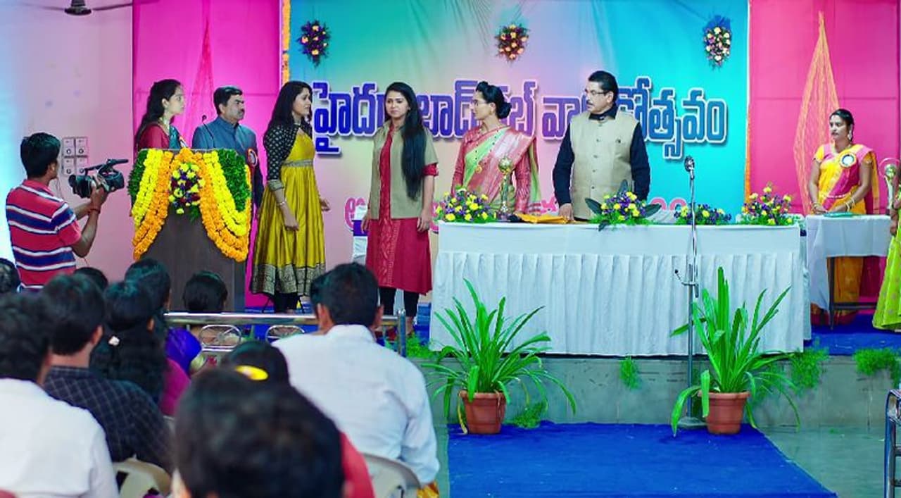 సౌందర్య గారు ఆనంద్ రావు(anand rao)గారు మీరు మహానటులు, అన్ని తెలిసి కూడా ఏమి తెలియనట్టు ఏమి నటించారు అని అంటుంది జ్వాలా. అప్పుడు హిమ, సౌర్య నన్ను క్షమించు అని అనడంతో మళ్లీ హిమ చెంప చెల్లుమనిపిస్తుంది శౌర్య. అయితే అదంతా కూడా హిమ అక్కడే ఉండి ఊహించుకుంటుంది. ఆ తరువాత జ్వాలా(jwala)కు శాలువా కప్పి అవార్డును అందిస్తుంది హిమ. అప్పుడు జ్వలా నమస్తే డాక్టర్ హిమ గారు అంటూ వెటకారంగా మాట్లాడిస్తుంది.