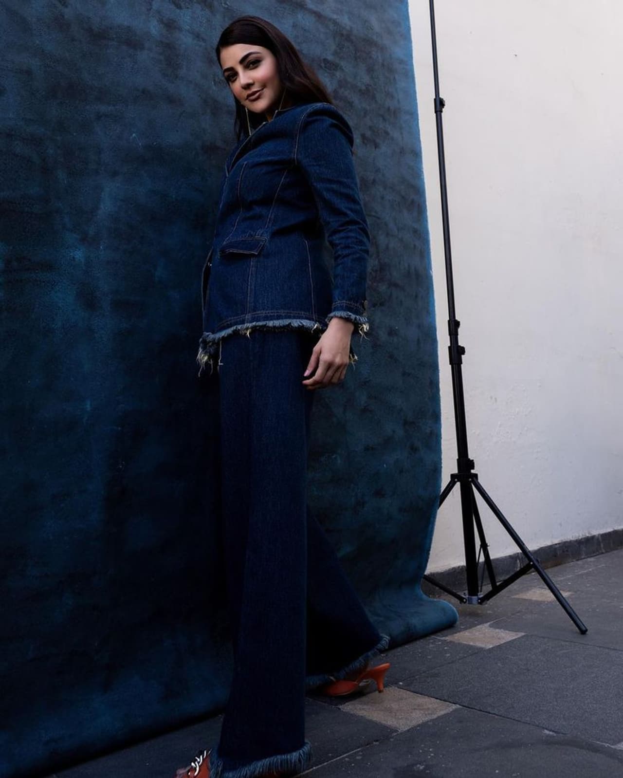 కాజల్ లేటెస్ట్ ఫోటోల్లో బ్లూ జీన్స్ షర్ట్, ప్యాంట్ ధరించింది. కసిగా చూస్తూ ఘాటు రేపే పోజులిచ్చింది. బ్యాక్, సైడ్, ఫ్రంట్ యాంగిల్లో ఫోటోలకు పోజులిచ్చింది కాజల్. ఇంతటి హాట్గా అందాల చందమామ పోజులివ్వడంతో కుర్రాళ్లంతా బేజారెత్తిపోతున్నారు. ఈ అమ్మడి ఫోటోలకు తోటి హీరోయిన్లు కూడా అవుతున్నారు. తమన్నా స్పందించింది. ఫైరింగ్ ఎమోజీలను పంపింది. కాజల్ గ్లామర్ దెబ్బకి తోటి హీరోయిన్ కూడా జెలసీఫీలవుతున్నారని చెప్పొచ్చు.